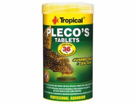PLECO’S TABLETS KRMIVO SO SPIRULINOU A DODATKOM DUBOVÉHO DREVA PRE VEĽKÝCH PANCIERNIKOV PLECO’S TABLETS – špeciálne, plnohodnotné krmivo vo forme šošovkovitých ponárajúcich sa tabletiek s priemerom 25 mm, určených pre veľké druhy rýb np. Hypostomus plecostomus z rodu Loricariidae. Prostredníctvom pomalého stierania tabletky umožňuje podobné žranie ako v prírode.KŔMNY NÁVOD: v závislosti od veľkosti rýb a obsadenia vhodiť do akvária 1 alebo viacej tabletiek. Neprekrmovať.Kompletné krmivo pre ozdobné ryby.Zloženie: riasy (v nich Spirulina platensis 36%), ryby a produkty z rýb, obilniny, rastlinné bielkovinové koncentráty, mäkkýše a kôrovce, mäso a produkty živočíšneho pôvodu, kvasnice, produkty rastlinného pôvodu (v nich múčka z duba 1,0%), mlieko a produkty z mlieka, oleje a tuky, minerálne látky.Doplnkové látky (na kg): Vitamíny: vitamín A 20 800 m.j., vitamín D3 1 140 m.j., vitamín E 70 mg, vitamín C 290 mg. Stopové prvky: železo (monohydrát síranu železnatého) 23,6 mg, zinok (oxid zinočnatý) 6,4 mg, mangán (oxid manganatý) 4,6 mg, meď (pentahydrát síranu meďnatého) 1,0 mg, jód (jodid draselný) 0,14 mg, molybdén (molybdénan sodný) 0,03 mg. Lecitín. Antioxidanty.Analytické zložky: dusíkaté látky 43,0%, tuk 5,0%, vláknina 3,5%, vlhkosť 10,0%.