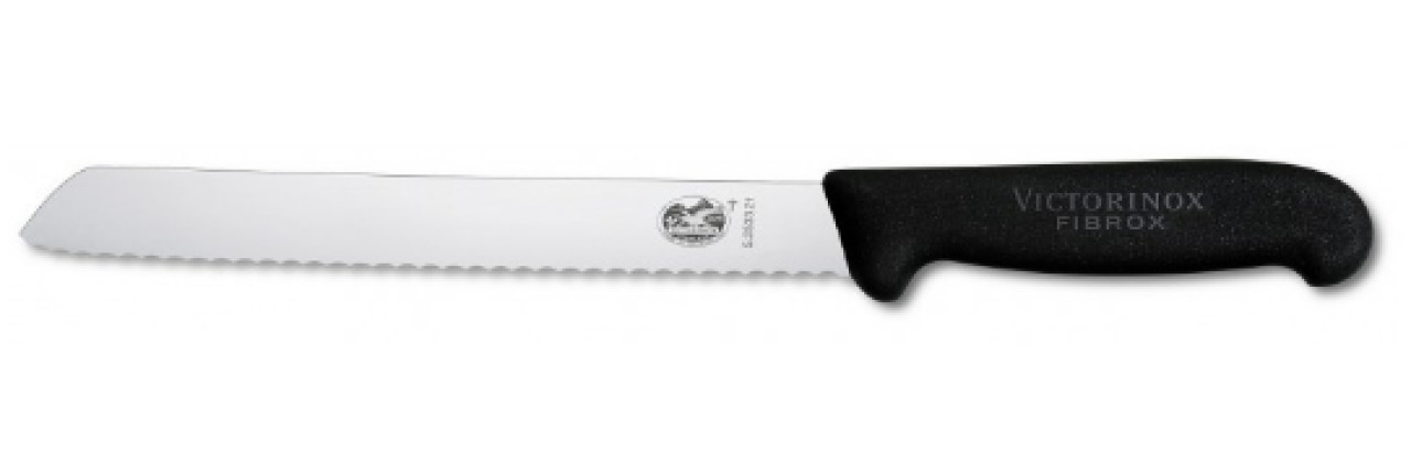 Nôž na chlieb a pečivo s fibroxovou rukoväťou a dĺžkou čepele 21 cm.Priekopnícky vynález menom Fibrox.Vynájdenie plastovej rukoväte Fibrox znamenalo pre Victorinox skutočný prielom. Je založená na najmodernejších ergonomických poznatkoch a užívateľovi poskytuje optimálnu ochranu. Všetky fibroxové rukoväte je možné sterilizovať až do teploty 150°C a zodpovedajú požiadavkam smernice (ES) 1935/2004.