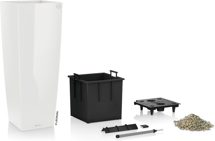 Extra vysoký kvetináč Lechuza Cubico Alto v sebe kombinuje jednoduchosť a strohú eleganciu. Jeho hranaté krivky vyniknú predovšetkým v moderných interiéroch zariadených v minimalistickom štýle.Vďaka svojej impozantnej výške - meria až 105 cm! - je ideálny aj do rozľahlejších priestorov ako sú vstupné haly hotelov a firiem či dlhé priestranné chodby.Kvetináč Lechuza Cubico Alto je dostupný ako all-in-one set vrátane príslušenstva na pestovanie zeminových rastlín, ktoré obsahuje samozavlažovací systém (SZS). Samozrejmosťou je samozavlažovací systém, vďaka ktorému môžete pohodlne odísť na dovolenku bez toho, aby ste sa o svoje rastliny museli báť. Voda v zásobníku vnútornej nádoby vydrží 2-4 týždne v závislosti od druhu rastliny a podmienok, v akých sa nachádza. Vďaka hladinomeru máte dokonalú kontrolu nad polievaním - ukazovateľ hladiny vody Vám napovie, kedy rastlinu opäť zaliať.ALL-IN-ONE SET OBSAHUJE: kvetináč Lechuza Cubico Alto Premium, vyberateľnú vnútornú nádobu, podpery, samozavlažovací set (SZS) s hladinomerom a vrecko s Lechuza PON substrátom (drenáž).PREČO KVETINÁČE LECHUZA.Kvetináče Lechuza sú odolné proti nárazu a prasknutiu, lebo sú vyrobené z kvalitného a odolného plastu.Odľahčený plast zaručuje ich nízku hmotnosť a ľahkú manipuláciu.Jedna z ich ďalších výhod je rezistentnosť voči UV žiareniu.Mrazuvzdornosť za každého počasia – Lechuza kvetináče odolávajú mrazu a nepriaznivým zimným podmienkam, preto sú vhodné na Vaše terasy či balkóny.Kvetináče Lechuza, vyrábané v Nemecku, sa vyznačujú vysokou kvalitou, za čo vďačia aj skúsenostiam firmy Playmobil, ktorá je známa ako celosvetovo uznávaný výrobca hračiek už desiatky rokov, vďaka svojmu know-how pri spracovaní umelej hmoty.Jednoduchá aplikácia hnojiva cez šachtu samozavlažovacieho systému.Široké spektrum veľkostí, tvarov, farieb a štruktúry – špičkový dizajn.Nádoby Lechuza sú vhodné tak do bytových priestorov, ako aj kancelárií, obchodných centier, reprezentačných sál či kultúrnych zariadení.Možnosť kontroly vody v kvetináči pomocou hladinomeru.SYSTÉM PESTOVANIA V SAMOZAVLAŽOVACÍCH ČREPNÍKOCH LECHUZA.Kvetináče Lechuza skrášlia každý interiér, nie sú však iba ozdobnými obalmi – rastliny sa vysádzajú priamo do vnútornej nádoby, ktorá je súčasťou setu. Nepotrebujete žiadne podmisky, zásobník vody je "skrytý" vo vnútri kvetináča – už žiadna voda na koberci či na poličke. Samozavlažovací systém rastlinám pri tom poskytuje najlepšie podmienky pre optimálny rast a vývoj.Systém na zavlažovanie obsahuje hladinomer na meranie výšky hladiny vody, ktorý sa vloží do šachty s krytkou. Hladinomer meria výšku hladiny vody až od úplného dna kvetináča, čo Vám umožňuje poznať celkové množstvo vody v celom objeme kvetináča. Ryska hladinomeru ukáže, kedy rastlinu opäť zaliať. Súčasťou setu je aj vrecko Lechuza PON substrátu, ktorého obsah sa vysype na dno vnútornej nádoby a poslúži ako drenážna vrstva pre rastliny.Všetko je premyslené, počítame aj s využitím v exteriéry a prípadným dažďom. Kvetináče Lechuza majú na spodnej časti červenú tesniacu skrutku, cez ktorú po vybratí odtečie prebytočná dažďová voda. V kvetináči ostane toľko vody, koľko rastlina potrebuje vďaka zásobníku na vodu – tým zabránime preliatiu rastliny.prečítajte si aj celý návod na pestovanie so samozavlažovacím systémom Lechuza >>>.ZÁKLADNÉ PARAMETRE KVETINÁČA.