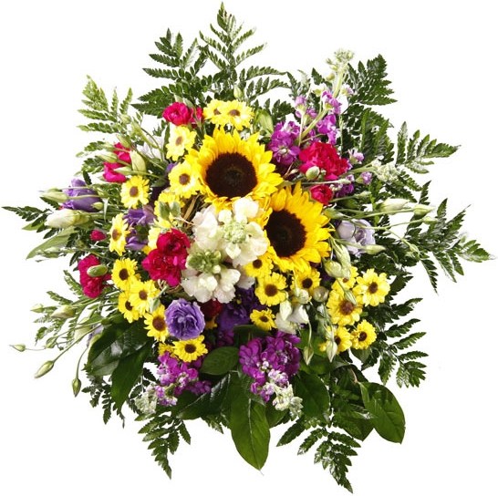 Krása našej prírody v pestrofarebnej kvetinovej kompozícii. Kytica pôsobí prirodzene a úprimne. Potešte ňou svoju manželku, mamičku, babičku, alebo inú dámu, na ktorej Vám záleží. Určite sa z nej bude tešiť dlhú dobu. Veľká kytica obsahuje: 3 slnečnice, 8 ks lysianthus, 8 minikarafiátov, 8 ks santina, 8 ks antirhinum, dozdobená zeleňou. Priemer kytice: 45 cm Stredná kytica obsahuje: 2 slnečnice, 5 ks lysianthus, 5 minikarafiátov, 5 ks santina, 5 ks antirhinum, dozdobená zeleňou. Priemer kytice: 35 cm Malá kytica obsahuje: 1 slnečnicu, 2 ks lysianthus, 2 minikarafiáty, 2 ks santina, 2 ks antirhinum, dozdobená zeleňou. Priemer kytice: 30 cm.