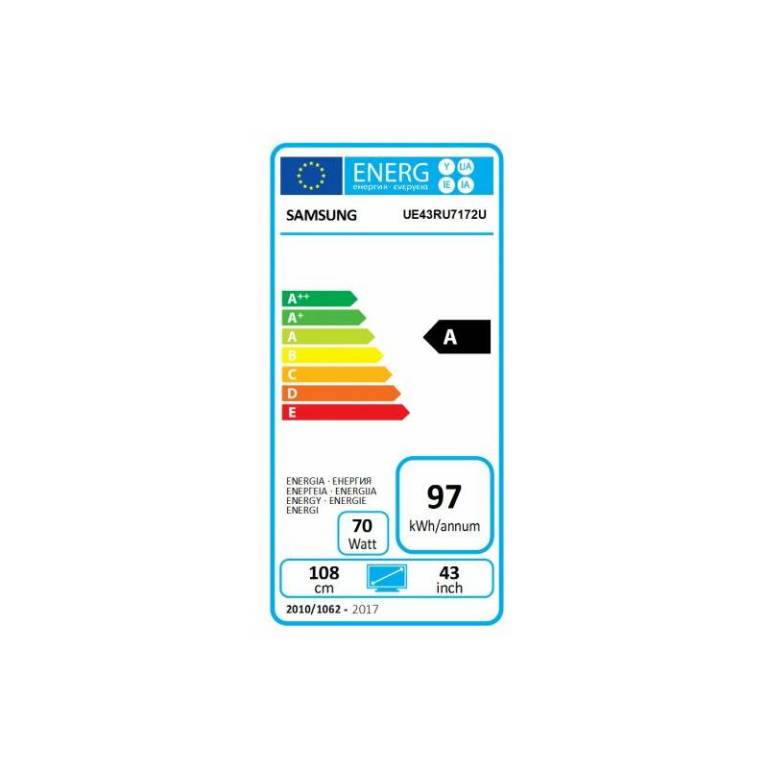 4K Smart TV.Technológia PurColor.Váš obľúbený obsah si vychutnáte s prirodzenými farbami a plný detailov, ktoré sú tak.ostré ako v skutočnosti. Váš zážitok zo sledovania bude odteraz ešte farebnejší.Úžasná obrazová kvalita vďaka UHD procesoru.Obrazová kvalita vás ohromí. Stojí za ňou jediný čip, ktorý ovláda zobrazenie farieb,.optimalizuje vysoký kontrastný pomer a ovláda HDR.Vďaka HDR uvidíte viac detailov.Technológia High-Dynamic Range zvyšuje rozsah jasu televízora, takže si môžete užiť.obrovské spektrum farieb a vizuálnych detailov, a to aj v tých najtmavších scénach.Výnimočne veľký obraz.Budete tak blízko, ako je to len možné. S každým gólom v zápase alebo s každou.explóziou vo filmovom trháku sa ocitnete priamo v centre diania. Na veľkej obrazovke.plnej detailov je totiž všetko omnoho realistickejšie.Typ produktu: LED.Rad: 7.Displej.Velikost obrazovky: 43".Rozlíšenie: 3 840 × 2 160.Ultra Black: Nie je k dispozícii.Zakrivená obrazovka: Nie.Video.Obrazový procesor: UHD Engine.PQI (Index kvality obrazu): 1400.HDR (Vysoký dynamický rozsah): HDR.HDR 10+: Áno.HLG (Hybrid Log Gamma): Áno.Kontrast: Mega Contrast.Farby: PurColor.Miliarda farieb: Nie.Micro Dimming: UHD Dimming.Local Dimming: Nie je k dispozícii.Auto Depth Enhancer: Nie je k dispozícii.Contrast Enhancer: Áno.Filmový režim: Áno.Podpora prirodzeného režimu: Áno.Zvuk.Dolby Digital Plus: Áno.Vylepšenie dialógovej stopy: Áno.Zvukový popis: Áno.Zvukový výstup (RMS): 20 W.Konfigurácia reproduktorov: 2CH.Basový reproduktor: Nie je k dispozícii.Multiroom Link: Áno.Blutooth Audio: Áno.Smart Service.Vzdialené hlasové ovládanie TV: Nie je k dispozícii.Samsung SMART TV: Smart.Bixby: Nie je k dispozícii.Webový prehliadač: Áno.SmartThings aplikácia: Áno.SmartThings: Nie je k dispozícii.Galéria: Áno.Konvergencie.Zrkadlenie obsahu – TV na mobilné zariadenie: Nie je k dispozícii.Zrkadlenie obsahu / DLNA – mobilné zariadenie na TV: Áno.Prehrávač 360° videa: Nie je k dispozícii.Podpora 360° kamery: Nie je k dispozícii.Nízkoenergické Bluetooth pripojenie: Áno.Priame pripojenie Wi-Fi: Áno.Prehrávanie TV audia v telefóne: Áno.Zrkadlenie hudby: Nie je k dispozícii.Tuner/Vysielanie.Digitálne vysielanie: DVB-T2CS2.Analógový prijímač: Áno.2 prijímače: Nie je k dispozícii.CI (Common Interface): CI+ (1.4).Vysielanie údajov: HbbTV 1.5 (CZ,SK,AT,FR,ES,FI,EE,GR,SI,HR).Podpora TV Key: Áno.Konektivita.HDMI: 3 (HDMI 2.0).USB: 2.Komponentný vstup (Y/Pb/Pr): 1.Kompozitný vstup (AV): 1 (obvyklé použitie pre komponentov Y).Ethernet (LAN): Áno.Audio výstup (mini jack): Nie je k dispozícii.Digitálny zvukový výstup (optický): 1.Vstup RF (pozemný/káblový vstup): 1/1 (společné použitie pre pozmené vysielanie)/ 1.Slot CI: 1.HDMI ARC: Áno.Rýchle prepínanie HDMI: Áno.Vstavaný modul na pripojenie k bezdrôtovej sieti LAN: Áno.Anynet+ (HDMI-CEC): Áno.Dizajn.Dizajn: New Edge.Typ rámu: VNB.Tenké prevedenie: Slim.Farba prednej strany: CARBON SILVER.Svetelný efekt (Deco): Nie je k dispozícii.Typ stojana: BENDING PLATE.Farba stojana: DARK CARBON SILVER.Otočenie (doľava/doprava): Nie je k dispozícii.Ďalšie funkcie.Umelá inteligencia (AI): Nie je k dispozícii.AI Upscale: Nie je k dispozícii.Procesor: Štvorjadrový.Zjednodušenie: Negatívne farby / Stupne šedi / Priblíženie / Vysoký kontrast /.Viacnásobný výstup.zvuku / Video zoom.Digitálne čisté zobrazenie: Áno.Automatické hľadanie kanálov: Áno.Automatické vypnutie: Áno.Titulky: Áno.Connect Share™ (pevný disk): Áno.ConnectShare™ (USB 2.0): Áno.EPG: Áno.Rozšírená funcia nahrávania programov: Nie je k dispozícii.Herný režim: Áno (Auto Game Mode).Freesync: Nie je k dispozícii.Jazyk ponuky OSD: 27 európskych jazykov + Ruština (iba po pripojení k sieti v EE,LV,LT).Obraz v obraze: Nie je k dispozícii.Vstavané rozhranie BT HID: Nie je k dispozícii.Podpora rozhrania USB HID: Áno.Teletext (TTX): Áno.Časový posun: Nie je k dispozícii.V-čip: Nie je k dispozícii.Podpora IPv6: Áno.Podpora MBR: Áno.Ultra Clean View: Nie je k dispozícii.Ekologické funkcie.Ekologický snímač: Áno.Trieda energetickej účinnosti: A.Elektrické napájanie.Zdroj napájania: AC 220-240 V 50/60 Hz.Príkon (max.): 115 W.Príkon (pohotovostný režim): 0,5 W.Príkon (režim úspory energie): 31,1 W.Typická spotreba energie: 70 W.Maximálny pomer svietivosti: 75 %.Ročná spotreba energie (norma EU): 97 kWh.Rozmery.Rozmery balenia (Š x V x H): 1097 × 677 × 151 mm.Rozmery televízora so stojanom (Š × V × H): 970,2 × 636,3 × 210,3 mm.Rozmery televízora bez stojana (Š × V × H): 970,2 × 563,2 × 58,2 mm.Stojan (základné) (Š × H): 800 × 210,3 mm.Stojan (minimálne) (Š × H): Nie je k dispozícii.Hmotnosť.Hmotnosť balenia: 13,5 kg.Hmotnosť televízora s podstavcom: 9,8 kg.Hmotnosť televízora bez podstavca: 9,6 kg.Príslušenstvo.Model diaľkového ovládača: TM1240A.Batérie (pre diaľkový ovládač): Áno.Samsung Smart diaľkový ovládač (súčasťou balenia): Nie je k dispozícii.Podpora No Gap Wall-mount: Nie.Podpora dizajnových stojanov: Nie.Podpora nástenného držiaku Mini (držiak nie je súčasťou balenia): Áno.Podpora držiaka VESA (držiak nie je súčasťou dodávky): Áno.Používateľská príručka: Áno.Elektronická príručka: Áno.Kábel k anténe: Nie je k dispozícii.Napájací kábel: Áno.HDMI kábel: Nie je k dispozícii.