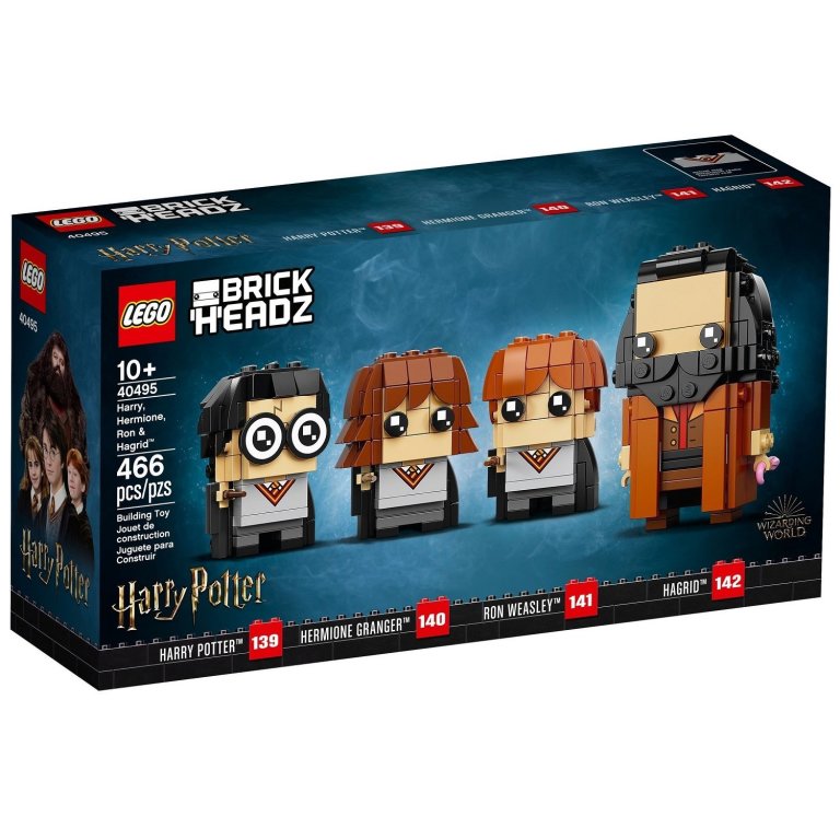 LEGO 40495 - Nové verzie 4 najslávnejších postáv z filmov o Harrym Potterovi v štýle LEGO® BrickHeadz™: Harry Potter, Hermiona Grangerová, Ron Weasley™ a Rubeus Hagrid™.
