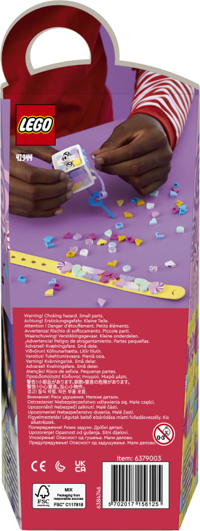 Nakopnite tvorivú stránku detí s týmto hravým setom LEGO® DOTS Sladké mačiatko – náramok & ozdoba na tašku (41944). Je navrhnutý pre deti od 6 rokov a obsahuje pružný náramok, ozdobu na tašku so závesným krúžkom, ako aj kopu pastelových, žiarivo sfarbených a opalizujúcich ozdobných dielikov. Deti tak majú k dispozícii až 2 priestory na tvorbu a keďže sa zdobia naozaj ľahko a intuitívne, objavovať zákutia svojho sebavyjadrenia môžu stále dookola. Sú skvelé na dni plné hernej zábavy a po vyzdobení si ich deti môžu nasadiť alebo sa o ne podeliť s kamarátmi. Pre ešte viac zábavy siahnite aj po DOTS doplnkoch – 6. séria (predávajú sa samostatne), kde nájdete kopu ďalších dielikov. Hrajte sa, ako len túžite Sety DOTS deťom ponúkajú zábavu a tvorivosť hier LEGO pri zdobení náramkov. S týmto setom – i ďalšími setmi DOTS (predávajú sa samostatne) – je možné všetko, pretože ich čaro tkvie v detskej fantázii. Sety na vlastnoručnú tvorbu DOTS sú tými najlepšími darčekmi pre deti, ktoré si zaslúžia odmenu. Dizajnujte, zdobte a zdieľajte – Odmeňte malú tvorivú hlavičku setom na tvorbu LEGO® DOTS Sladké mačiatko – náramok& ozdoba na tašku (41944). Tvorivá zábava začína hneď po otvorení balenia Cukrovinkové dizajny na každú príležitosť – Deti môžu prebádať možnosti tvorby pri zdobení tohto nastaviteľného pastelovo žltého náramku a bielej ozdoby na tašku množstvom pestrofarebných dielikov Neobmedzené dizajny v kapsičke – Umelecký set možno pri hrách plných originality využiť osamote, prípadne zapojiť aj dieliky zo setu LEGO® DOTS doplnky – 6. séria (predávajú sa samostatne) pre ešte viac zábavy Odmena pre deti od 6 rokov – Každý malý milovník vlastnoručnej tvorby si tento jedinečne prispôsobiteľný set zamiluje. Tieto odolné náramky, ozdobu na tašku a farebné dieliky možno podarovať ako darček na každú príležitosť Vreckovo prenosné – Náramok meria vyše 19 cm na dĺžku a prívesok na tašku 3 cm na výšku aj šírku, takže deti majú dosť miesta na to, aby predviedli svoju tvorivosť a štýl naozaj kdekoľvek Či vytvoria malí dizajnéri tentokrát? – Vďaka zrozumiteľnej inšpirácii na balení a priloženému letáčiku, ako aj množstvu pestrofarebných cukrovinkových dielikov, sa zdobenie začne hneď po otvorení Dizajnérska sebadôvera a sloboda – Tento set LEGO® DOTS je stelesnením neobmedzenej tvorivosti. Na náramkoch na zdobenie môžu deti predviesť svoju vynaliezavosť zábavným spôsobom Neobmedzené možnosti hier a vyjadrenia – Sety LEGO® DOTS prinášajú radosť z hier LEGO novej skupine detí v podobe tvorby a zdobenia vlastných šperkov či interiérových doplnkov Počet diellikov: 188 Pre deti od: 6 rokov.