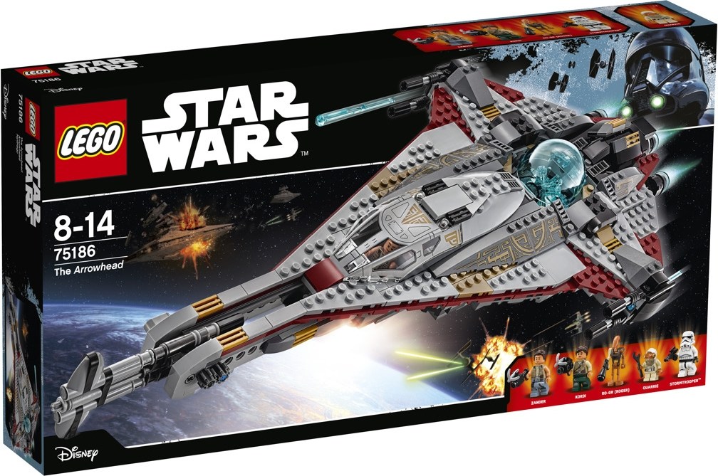 Vstúp do bitky spolu s loďou Arrowhead s otváracím kokpitom, kryštálovým zdrojom energie, pružinovými vystreľovačmi a výklopným baranidlom, súčasťou je navyše servisný vozík, štyri minifigúrky a figúrka R0-GR. Rozohraj nebezpečnú misiu s loďou Arrowhead z LEGO® Star Wars: Freemaker Adventures. Táto útočne vyzerajúca loď obsahuje zdvíhací kabínový priestor s miestom pre tri minifigúrky a R0-GR, priehľadnou otváracou kopulou odhaľujúcou oddeliteľný lodný kryštálový zdroj energie, dva pružinové vystreľovače a pôsobivé výklopné baranidlo. Súčasťou je ďalej servisný vozík s nástrojmi a náhradné munície ako ďalší možný úvod príbehu. Súčasťou sú štyri minifigúrky: Zander, Kord, Quarrie a Stormtrooper, navyše figúrka R0-GR. Rozmery balenia a špecifikácie: Loď obsahuje zdvíhací kabínový priestor s miestom pre tri minifigúrky a R0-GR, priehľadnú otváraciu kopulu s oddeliteľným lodným kryštálovým zdrojom energie, dva pružinové vystreľovače a pôsobivé výklopné baranidlo. Súčasťou je ďalej servisný vozík s nástrojmi a náhradné munície. Medzi zbraňami nájdeš dve pištole s hákom a dve blasterové pištole. Medzi doplnkami nájdeš hasák a kotúčovú pílu. Vysuň baranidlo a priprav sa na vesmírnu bitku! Udržuj loď v kondícii s pomocou servisného vozíka. Rozohraj si svoje vlastné vzrušujúce dobrodružstvo animovaného televízneho seriálu LEGO® Star Wars: Freemaker Adventures. Arrowhead meria cez 7 cm na výšku, 51 cm na dĺžku a 24 cm na šírku. Servisný vozík meria cez 5 cm na dĺžku a 3 cm na šírku, a takmer 2 cm na výšku.