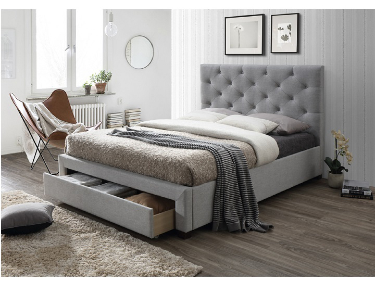 Vkusná, originálna, pôvabná a oveľa viac tak toto je manželská posteľ SANTOLA. Manželská posteľ SANTOLA vysoké atraktívne čelo postele, ktoré je jedinečne prešívané. Manželská posteľ SANTOLA má úložný priestor v podobe jednej zásuvky. Taktiež v cene postele je rolovaný rošt. Manželská posteľ SANTOLA ...viac