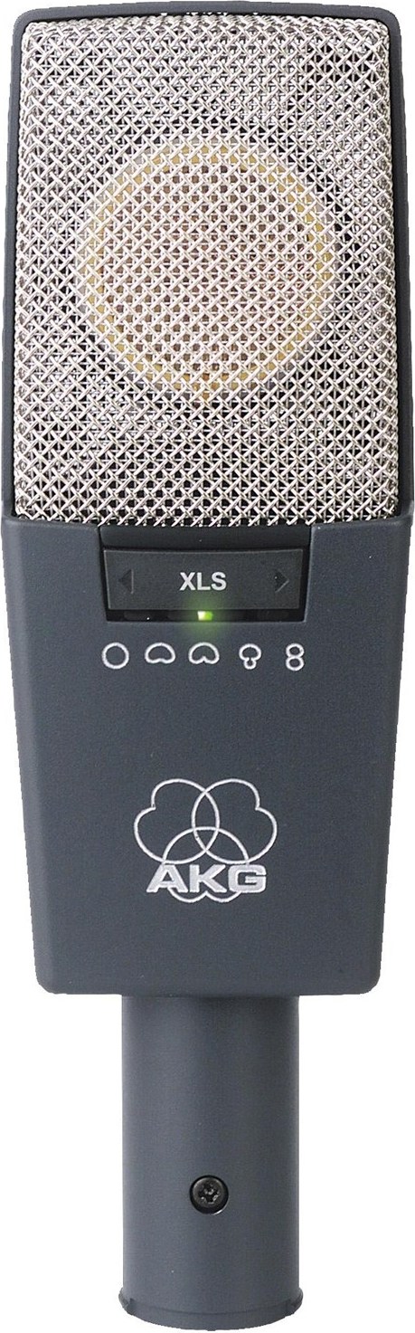 C 414 XLS štúdiový mikrofón.Možnosť prepínania medzi 5 smerovými charakteristikami. Napájanie prostredníctvom 48V fantómového napájania, najnovší nízkošumový predzosilňovač, kufrík, veľký odpružený držiak, windscreen, pop filter.