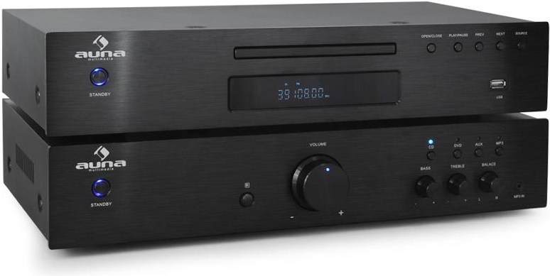 Kompletný Auna HiFi systém s jednoducho suverénnym dizajnom a prvotriednymi parametrami. HiFi zosilňovač s výkonom 600 W a CD-MP3 prehrávač. Okrem predného AUX vstupu disponuje set USB vstupom, umožňujúcim prehrávanie MP3 súborov, a integrovaným rádioprijímačom. Ťažké vrchné opracovanie z brúsenej ušľachtilej ...viac