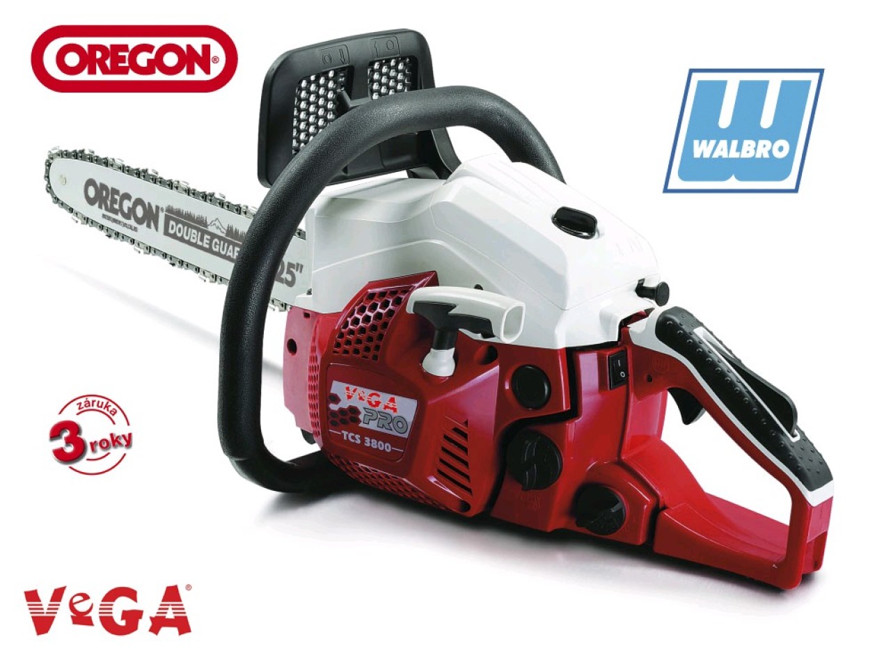 Motorové píly VeGA TCS Professional ponúka vysokú kvalitu všetkým náročným používateľom, ktorí očakávajú profesionálne reťazové píly na úrovni triedy farmer.Skriňa motora je vyrobená zo zliatiny magnézia, čo dáva váhovú výhodu až 0,5 kg oproti konkurencii.Ďalej zliatina magnézia lepšie odvádza teplo, než hliníkové telo, teda nehrozí "utavení" stroja.Výborné vyváženie pil VeGA TCS Professional a účinný antivibračný systém spolu s komponentmi od tých najlepších svetových dodávateľov umocňujú excelentný rad reťazových píl. Reťazová lišta a reťaz sú od americkej spoločnosti OREGON, japonskej karburátory Walbro a sviečky NGK. Technické parametre: Motor: 2-takt, úsporný nízkoemisné VeGAObjem motora: 40.1 cm3Výkon: 1,5kW / 2 HpŠtartovanie: ručné, ťahacie štartérKarburátor: WalbroTyp reťaze: oregon 3/8Veľkosť lišty: oregon 400 mmRukoväť: AntivibračnéHmotnosť: 4.6 kg.
