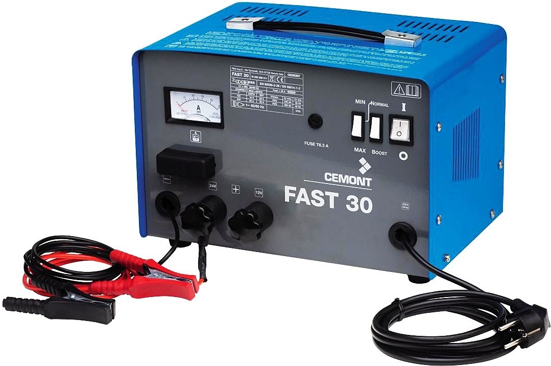 Jednofázová výkonná nabíjačka ideálna pre nabíjanie vysokokapacitných batérií 12/24V. Pevná kovová skrinka vhodná pre všetky prostredia. Dodávané s ampérmetrom pre kontrolu nabíjania ochranou proti prepólovaniu, preťaženiu a tepelná ochrana.Príslušenstvo:. - sada izolovaných zvierok s káblami. - napájací kábel. - bezpečtnostné pokyny. - návod na používanie.ňNabíjačka autobatérií, autonabíjačka,.