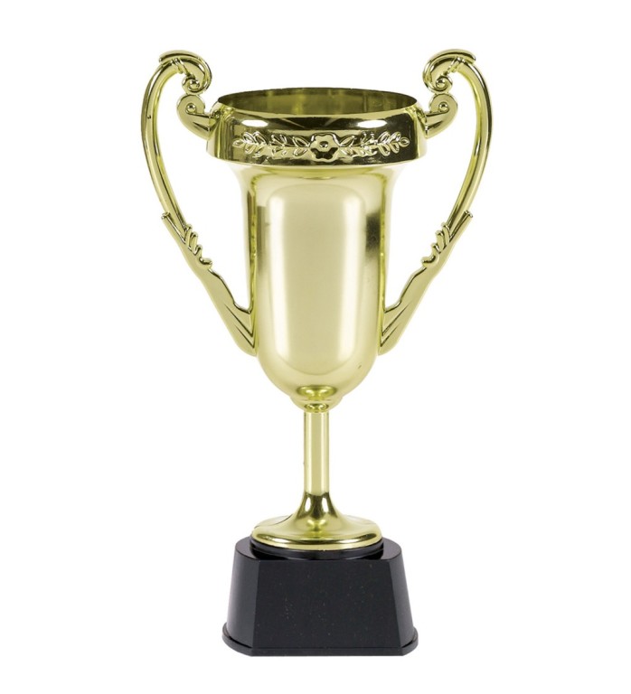 Trofej v podobe zlatého poháru pre víťaza. Veľkosť: 22,9 x 14 cm. Pojmy spojené s týmto produktom: pohár, cena, trofej, odmena, zlatý.