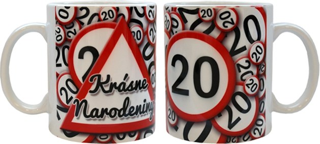 Hrnček 20 rokov je originálny hrnček k dvadsiatim narodeninám, ktorý je nielen pekný, ale aj praktický. Na hrnčeku sú vyobrazené dopravné značky s číslom 20 a nápis "Krásne narodeniny". Tento vtipný darček môžete darovať mužovi ale aj žene. Cena je za 1 kus.