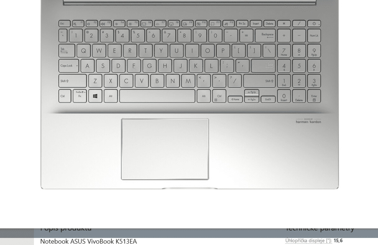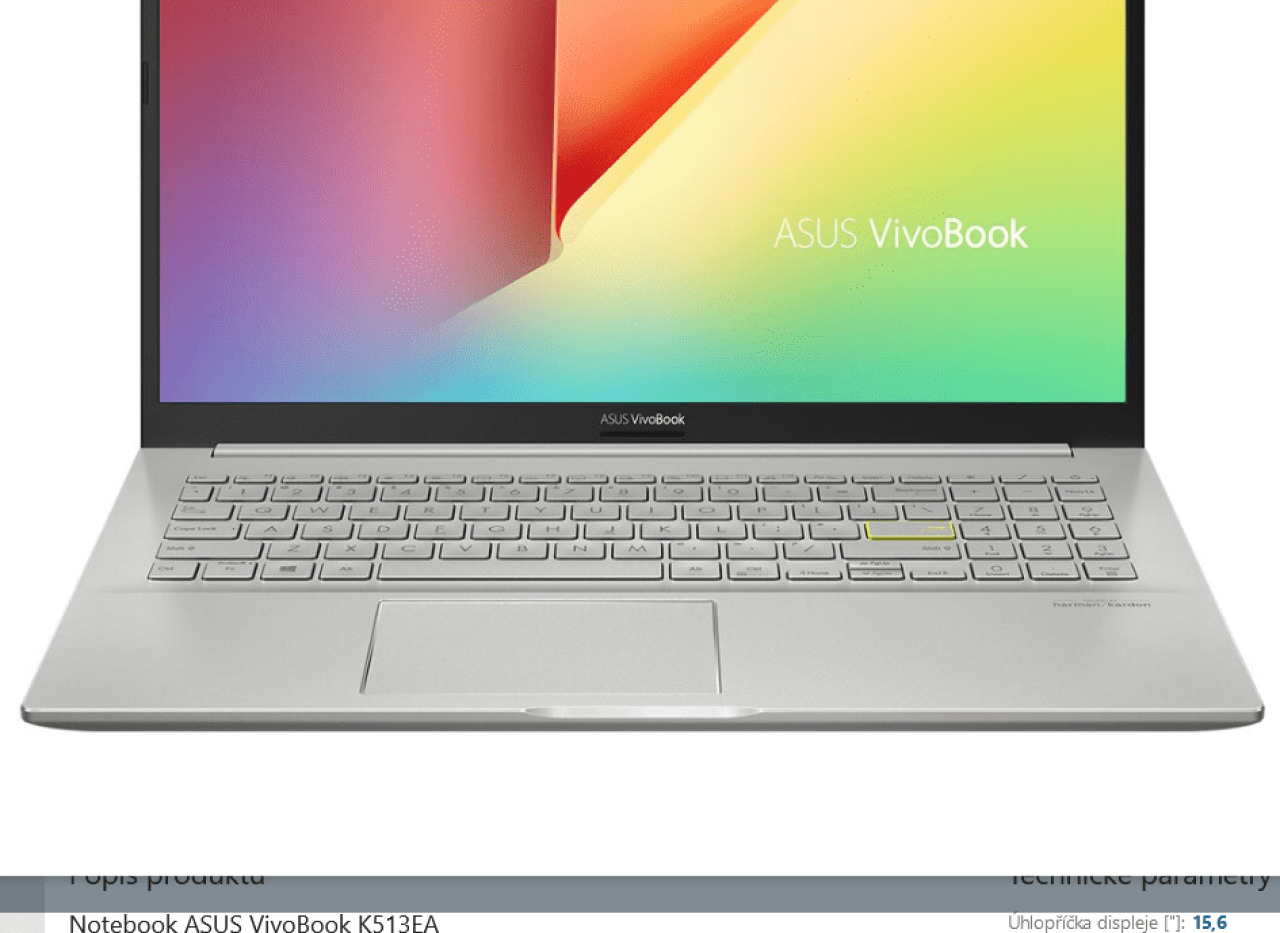Tenký a ľahký notebook s pohlcujúcim displejomTenké prevedenie 17,9 mm a hmotnosť na hranici 1,8 kg sú skvelé parametre pre cestovanie. Vďaka tenkému rámu displeja NanoEdge s veľkým pokrytím 85 % displeja voči krytu sa podarilo notebook zmenšiť a jeho krásny dizajn bude navyše budiť pozornosť okolia. Aj napriek kompaktným parametrom je notebook pripravený pre všetky bežné aplikácie každodenného použitia. Výkonný v každom ohľadeVivoBook K513EA vás dokáže svojím výkonom podržať v každodennom bežnom použití pri práci, zábave a multitaskingu. To všetko je zabezpečené pomocou moderných procesorov Intel Core 11. generácie, rýchlou operačnou pamäťou DDR4 a výkonnými jednotkami SSD M.2 až PCIe NVMe. S takýmito parametrami je multitasking hračkou aj pri práci s náročnejšími aplikáciami. Inteligentný touchpad a pohodlná klávesnicaTouchpad bol navrhnutý tak, aby bol čo najviac intuitívny, jeho povrch veľmi citlivý a presný s okamžitou reakciou. Touchpad podporuje dotyk viacerými prstami súčasne a inteligentné gestá, ktoré simulujú mnoho funkcií dotykovej obrazovky systému Windows 10 pre veľmi intuitívne ovládanie. Komfortnejší zážitok z písania vám poskytne klávesnica s príjemným zdvihom 1,4 mm, istým chodom a excelentnou odolnosťou. Špičkový zvukSkvelý zvuk je zabezpečený vďaka spolupráci s tímom audio profesionálov zo spoločnosti Harman Kardon. Zabudnite na plechové chrastenie a užívajte si plné basy a iskrivé výšky pri počúvaní hudby a sledovaní filmov. Aj v tenkom a kompaktnom notebooku tak získate schopného partnera pre zábavu. *Špecifikácia sa môže líšiť v závislosti od modelu Podrobná špecifikácia:Operačný systém: