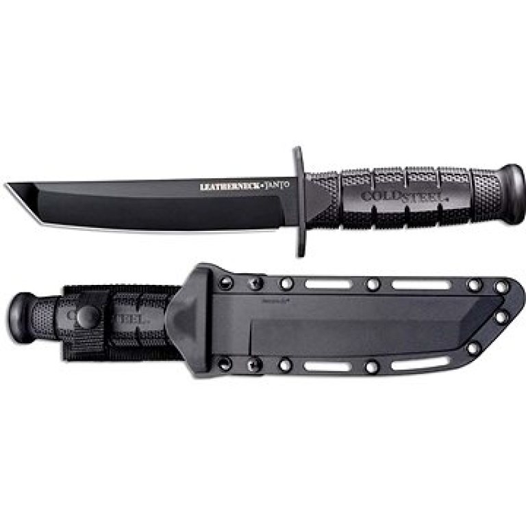 Nôž s pevnou čepeľou, dĺžka čepele 18 cm, celková dĺžka 30.3 cm, hmotnosť 350g.Viete, aký nôž majú v obľube členovia námornej pechoty Spojených štátov? Jednoznačne Cold Steel Leatherneck Tanto, ktorý bol špeciálne vyrobený práve k pocte tejto námornej pechoty. Spoznáte ho podľa charakteristického tvaru rukoväte a dvoch odlišných druhov čepele. Tá je u noža Leatherneck Tanto vyrobená z ocele D2, ktorá vyniká vysokou odolnosťou proti opotrebovaniu a veľmi dobre drží ostrie. Nejedná sa priamo o nejhdzavejúcu oceľ, je však vysoko nehrdzavejúca, čo ešte zosilňuje povrchová úprava čepele čiernym práškom. Protišmykovú rukoväť zakončuje tučný oceľový uzáver, ktorý môžete v prípade potreby použiť ako kladivo. Spolu s nožom Leatherneck Tanto obdržíte aj všestranné vojenské puzdro pre bezpečné a pohodlné nosenie.Kľúčové vlastnosti noža Cold Steel Leatherneck TantoNôž s pevnou čepeľou používaný na vojenské účelyCharakteristický tvar rukoväte a dva odlišné druhy.