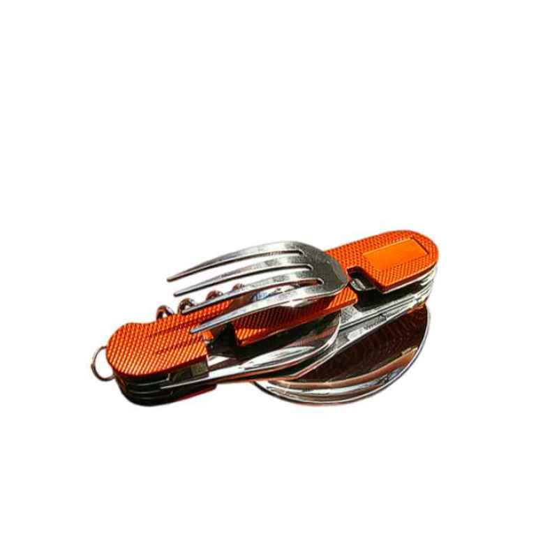 multifunkčný vreckový kovový nôž s veľkosťou 11 cm v zloženom stave farba : modrá, oranžová, strieborná váha : 200 g nožík univerzál OUTDOOR špecifikácia : malý vreckový nožík s 11-timi funkciami : veľká lyžica, nôž, vidlička, otvárač na na fľaše a konzervy, vývrtka, malá mocca lyžička, viacúčelový háčik, nerezový krúžok na kľúče a iné po odklopení vidličky a veľkej lyžičky sa nôž prakticky rozdelí na 2 časti, kedy sa dá samostatne využiť vidlička, lyžička alebo nôž neoceniteľný pomocník vhodný do prírody, kempovanie, stanovanie, cestovanie, pre hubárov či rybárov a pod., ale aj na bežné použitie.