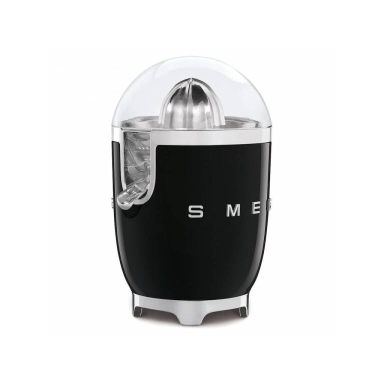 SMEG 50''s Retro Style elektrický citrusový odšťavňovač čierna je štýlový odšťavovač citrusov akéhokoľvek druhu. Okrem nezameniteľného dizajnu, vďaka jeho robustnej konštrukcii, kvalitným súčastiam z ktorých je vyrobený, bude vašim ideálnym a praktickým pomocníkom v kuchyni. Zároveň skrášli váš interiér a vyšperkuje ho svojim ikonickým retro stvárnením.Elegantný dizajn a skvostné prevedenie.. Ľahko rozoberateľný - lis, sitko a odšťavovaciu nádobu možno ľahko vybrať.. Automatický Štart/Stop systém - prístroj začne pracovať ľahkým tlakom na lis.. Umožňuje vylisovať šťavu z citrusov rôznych druhov a veľkostí.. Praktické viečko z Tritanu ™, brániace zaprášeniu, pokiaľ prístroj práve nepoužívate.. Jedným dotykom nastaviteľná výtoková hubica z nerez ocele - ochrana proti odkvapkávaniu.. Ľahká údržba - pochrómované vnútorné steny.. BPA free odšťavovacia nádoba z Tritanu ™, sitko a lis z nerez ocele, všetko vhodné do umývačka riadu.