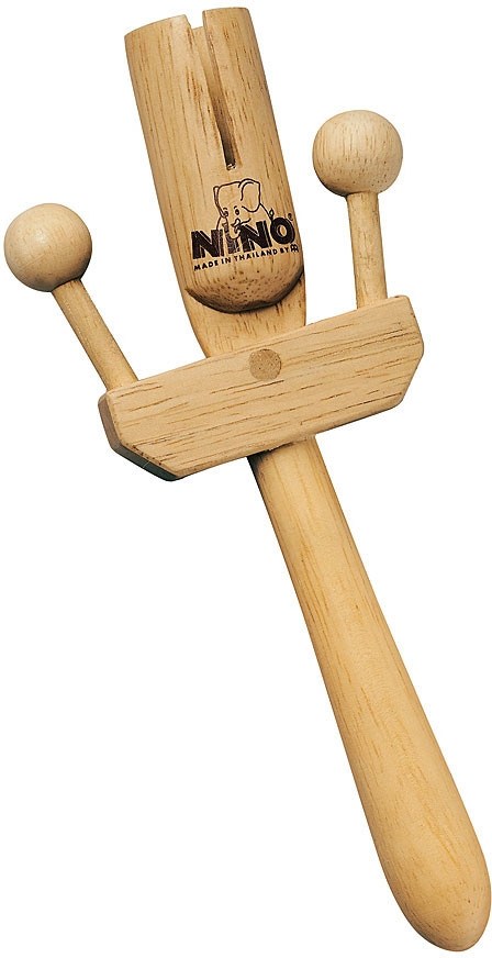 Detský drevený perkusný nástroj s pohyblivými guľôčkami, upevnenými na ráme. Guľôčky po zatrasení udierajú o ozvučnú plochu v strede, čím vyvolávajú zvukový efekt ako klopajúci ďateľ.
