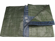 PE krycia plachta v zelenomodrej farbe, s nehrdzavejúcimi okami každých 100cm po celom obvode plachty, obojstranný zosilnený okraj. Odchýlka od udávaných rozmerov +- 5%.