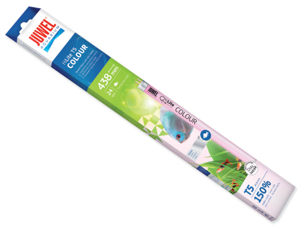 Žiarivka HighLite Colour T5 43,8 cm - Žiarivka T5 s prírodnou farebnosťou svetla, pri ktorom naberá na intenzite červená a modrá škála farieb v akváriu. Dĺžka: 43,8 cm, priemer 1,5 cm. 24W - Svietivosť 6800 K. Pre prírodný vzhľad akvária sa odporúča kombinácia žiariviek Colour + Day.Pre akvária Lido 120 a Trigon 350 (kratšie žiarivka).