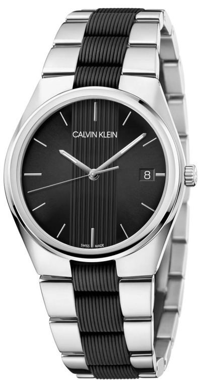 Calvin Klein. Hodinky od amerického dizajnéra so švajčiarskym srdcom. Pohon na batériu, remienok z ušľachtilej ocele, vodotesné 30 M, pánske, kruhový ciferník, rozmery: 40 mm, puzdro vyrobené z ušľachtilej ocele, ciferník čiernej farby, farba povrchu: strieborná, sklíčko : minerálne, módny doplnok pre každú príležitosť, strieborno čierny remienok,ručičkové zobrazenie času, hrúbka : 7 mm,šírka remienka : 22 mm.