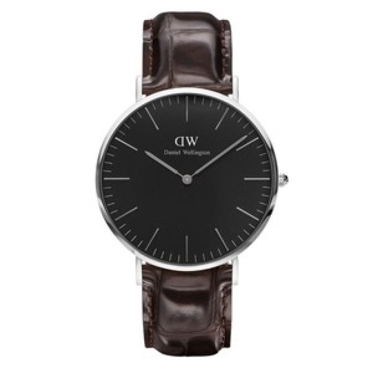 Klasické hodinky Daniel Wellington z kolekcie Classic Black York. Ideálny doplnok pre mužov uprednostňujúci analógové a guľaté hodinky. K ich skrášleniu naviac výrobca zvolil. Vo vnútri odolného, 6 mm vysokého púzdra, ktoré tvorí kvalitný oceľ nájdete spoľahlivý batériový (quartz) strojček poháňajúci v priemere 40 mm široký ciferník. Ten spoľahlivo chráni odolné minerálne sklíčko. Ako sami vidíte, púzdro zahalila strieborná, ciferník čierna a remienok hnedá farba. Z hľadiska materiálu vedie kože a jeho dĺžku, v tomto prípade 215 mm si môžete ľahko upraviť na obvod svojho zápästia. Tieto hodinky disponujú stupňom vodotesnosti 3 ATM.