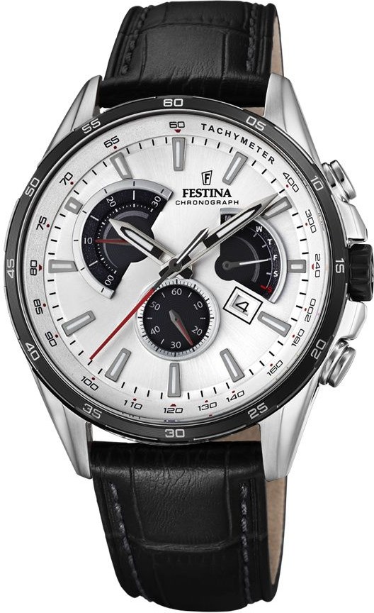 Štýlové hodinky Festina 20201/2 s chronografom.Označenie hodiniek:.Festina 20201/2.Modelová rada:.CHRONOGRAPH.Určenie hodiniek:.Pánske hodinky.Zobrazenie času:.Analógové.Strojček hodiniek:.Quartzóvý analóg, Modul: MFS80, Presnosť chodu v sekundách: +/- 20 mesiac.Pohon hodiniek:.Batéria - SR626SW.Púzdro hodiniek:.Ušľachtilá oceľ.Remienok hodiniek:.Koža - hnedá farba s hnedým prešívaním.Zapínanie remienka:.Pracka.Povrchová úprava:.Matná / Leštená oceľ, Luneta / Korunka - čierna farba (PVD úprava).Sklo hodiniek:.Minerálne.Ciferník hodiniek:.Šampaň farba, Indexy - šedá farba / biela farba / čierna farba, Ručičky - strieborná farba / biela farba / čierna farba, Červené / Šedé prvky, Logo Festina.Odolnosť voči vode:.WR 50, 5 ATM.Rozmery hodiniek:.Priemer púzdra: 42,00 mm, Šírka remienka: 21,00 mm / 19,00 mm.Záruka na hodinky:.2 roky.Balenie hodiniek:.Festina krabička.Funkcie hodiniek:.Chronograf - ručičkové stopky s presnosťou merania 1/1 sec., Kapacita merania do 30 min., Veľká centrálna stopková sekundová ručička - 1/1 sec., Ciferník na pozícii 10 - zobrazenie merania do 30 min.Sekundová ručička hodiniek v samostatnom ciferníku na pozícii 6.Multifunkčný dátum - zobrazuje deň v týždni a deň v mesiaci, Umiestnený na pozícii 2 - 3 / 4.Tachymeter.Chránená korunka.WR 50. V cene je zahrnuté :.Poštovné a balné zdarma v rámci SR.Záruka 24 mesiacov.Komplexný záručný a pozáručný servis, ktorý zabezpečuje firma TIME. IN - predaj hodín.Originál balenie.Originál záručný list.Návod na použitie v slovenčine.Autorizovaný predaj:.Sme autorizovaný predajca hodiniek FESTINA v SR s veľkou kolekciou a skladom v našej kamennej predajni.Prosím vezmite na vedomie, že záruka a popredajný servis hodiniek značky FESTINA sú poskytované len zákazníkom vlastniacim hodinky zakúpené len u autorizovaného predajcu.Internetový obchod www.inhodinky.sk používa vlastné texty a popisy k produktom.Podklady a technické parametre sú výhradne od autorizovaných dodávateľov.Technické zmeny a omyly vyhradené.Veľkosti obrázkov nezodpovedajú pôvodnej veľkosti hodiniek. Farby sa môžu mierne líšiť od originálu.