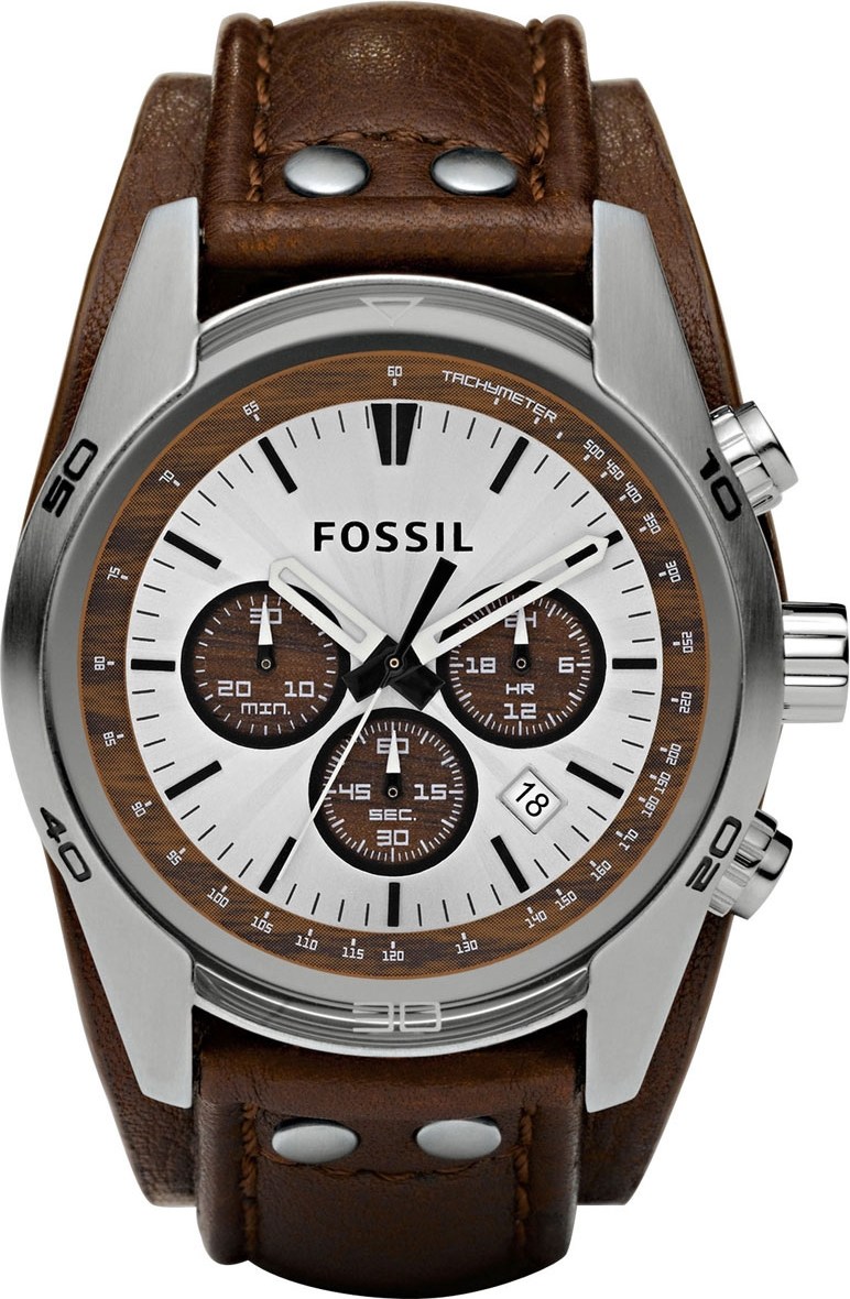 Pánske hodinky – analógové, strojček: Quartz batériový, priemer ciferníka: 44mm, sklo: minerálne, vodotesné 100m (10 ATM).Štýlové, neformálne, multifunkčné. To sú jedinečné pánske hodinky americkej značky FOSSIL Coachman! Hodinky s katalógovým číslom CH2565 z antikorovej ocele perfektne dotvárajú prvky dreva, ktoré v kombinácii s hnedým koženým remienkom dávajú hodinkám športový vzhľad, ktorý budete milovať!Pánske hodinky FOSSIL Coachman CH2565 a ich vlastnostiPánske hodinky FOSSIL Coachman športového typuSú vyrobené z antikorovej ocele v kombinácii akcentu dreva a koženého remienkaOkrúhly ciferník so svetlo strieborným podfarbenímHodinky disponujú funkciou stopiek v podobe troch časomeračov vnútri ciferníkaVrátane ukazovateľa dňa v mesiaciLuneta hodiniek s funkciou tachometraStrieborné puzdro hodiniek je po obvode opatrené číslicamiHodinky sú opatrené batériovým strojčekom QuartzCiferník chráni minerálne sklo odolávajúce nežiaducemu poškriabaniuFOSSIL.