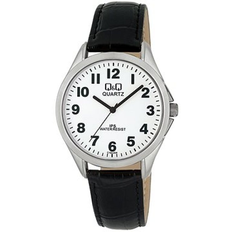 Pánske hodinky – veľkosť puzdra: 38cm, vodotesnosť: 3 ATM, materiál: obyčajný kov.Spoľahlivé pánske hodinky Q&Q C192J304 spájajú vysokú funkčnosť a precízne spracovanie. Hodinky tejto značky sú módne, pekné a dokážu upútať už na prvý pohľad. Iste sa stanú nenahraditeľnou súčasťou vášho imidžu. Tieto hodinky môžete nosiť na večierky, do školy, práce, prírody alebo len tak a vždy sa spoľahnúť na presný čas. Decentný biely ciferník v striebornom puzdre je veľmi prehľadný a všetko perfektne dopĺňa luxusný kožený remienok. Ciferník je ukrytý pod minerálnym sklíčkom, ktoré je vďaka prímesi kremíka odolné voči drobným mechanickým poškodeniam. Hodinky sú poháňané spoľahlivým Quartz batériovým strojčekom.Kľúčové vlastnosti pánskych hodiniek Q&Q C192J304 Pánske spoločenské hodinkyTradičný dizajn vhodný ku všetkým príležitostiamČierny kožený remienok a strieborné puzdro z obyčajného kovuPrehľadný ciferník hodiniek chráni odolné minerálne sklíčkoHodinky.