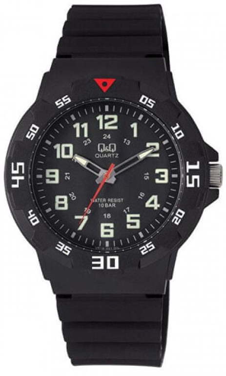 Pánske hodinky analógové, strojček: Quartz, priemer ciferníka: 40 mm, vodotesnosť 100 m (10 atm), sklíčko: plastové Q&Q FASHION PLASTIC VR18J001Y sú vkusné pánske náramkové hodinky, ktoré vás nenechajú v štichu. Ponúknu okrúhly ciferník s veľkosťou 40 mm, ten prekrýva odolné plastové sklíčko. Tento model používa ručičkové zobrazenie. Strojček s technológiou Quartz dáva istotu ako vysokej presnosti, tak naozaj dlhej výdrže batérie. Remienok tvorí plast, náramku dodáva zaujímavý vzhľad bez akejkoľvek straty komfortu pri nosení. Značkové hodinky Q&Q sa dajú vziať so sebou napríklad do bazéna, vo väčších hĺbkach by však nevydržali. Stupeň krytia je potom stanovený na úroveň 100 m (10 ATM). Podstatné výhody pánskych hodiniek Q&Q FASHION PLASTIC VR18J001Y Technológia Quartz a dlhá výdrž batérie Ochranu ciferníku zastane plastové sklíčko, nemusíte sa báť menších pádov a nárazov Materiálom puzdra je plast Remienok tvorí plast Vodotesnosť hodiniek Q&Q: 100 m (10 ATM).