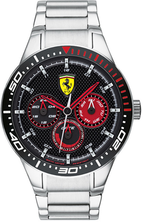 Ak hľadáte hodinky, ktorými by ste vyjadrili svoju lásku k motorom, potom sú tieto hodinky Scuderia Ferrari jasnou voľbou. Čierny ciferník ponúka pohľad na tri chronografy s funkciou dáta, ukazovatele dňa v týždni a 24 h ukazovateľom.