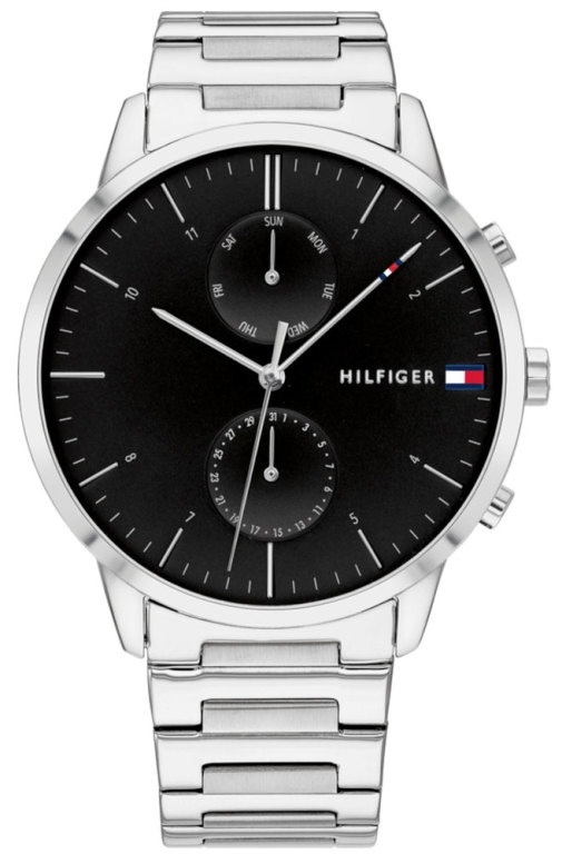 Módne hodinky Tommy Hilfiger z kolekcie Hunter. Ideálny doplnok pre mužov uprednostňujúci analógové a guľaté hodinky. K ich skrášleniu naviac výrobca zvolil. Vo vnútri odolného, 10 mm vysokého púzdra, ktoré tvorí kvalitný oceľ nájdete spoľahlivý batériový (quartz) strojček poháňajúci v priemere 44 mm široký ciferník. Ten spoľahlivo chráni odolné minerálne sklíčko. Ako sami vidíte, púzdro zahalila strieborná, ciferník čierna a remienok strieborná farba. Z hľadiska materiálu vedie oceľ a jeho dĺžku, v tomto prípade 205 mm si môžete ľahko upraviť na obvod svojho zápästia. Tieto hodinky disponujú stupňom vodotesnosti 3 ATM.Podporte nás v súťaži ShopRoku 2020! Viac tu.