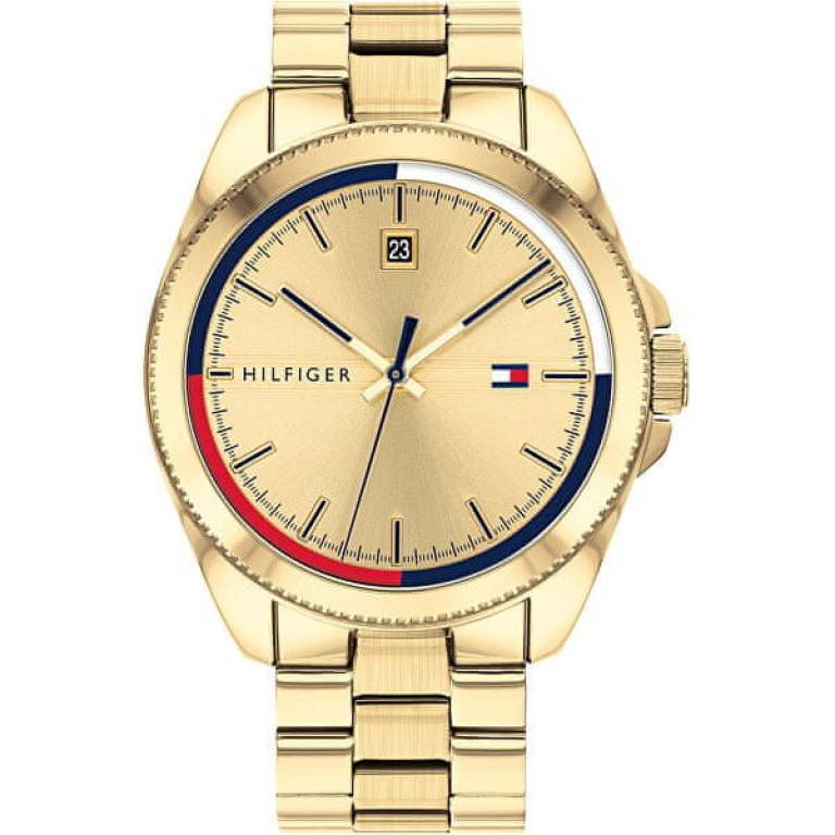 Pánske hodinky značky Tommy Hilfiger upútajú kompletným zlátením a vysoko kvalitným spracovaním. Súčasťou pozláteného oceľového puzdra je luxusný ciferník s decentnou dátumovkou na nezvyčajné dvanástej hodine.