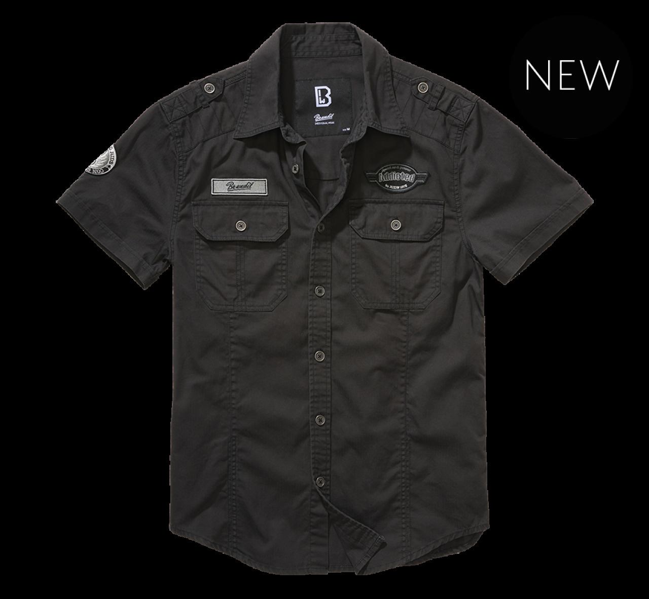 BRANDIT SHIRT Luis Vintage Shirt Short Sleeve Olive Klasický rovný strih Krátke rukávy Ramienka 2 náprsné vrecká s gombíkmi Štýlové nášivky 100% bavlna Tabuľka veľkostí:.