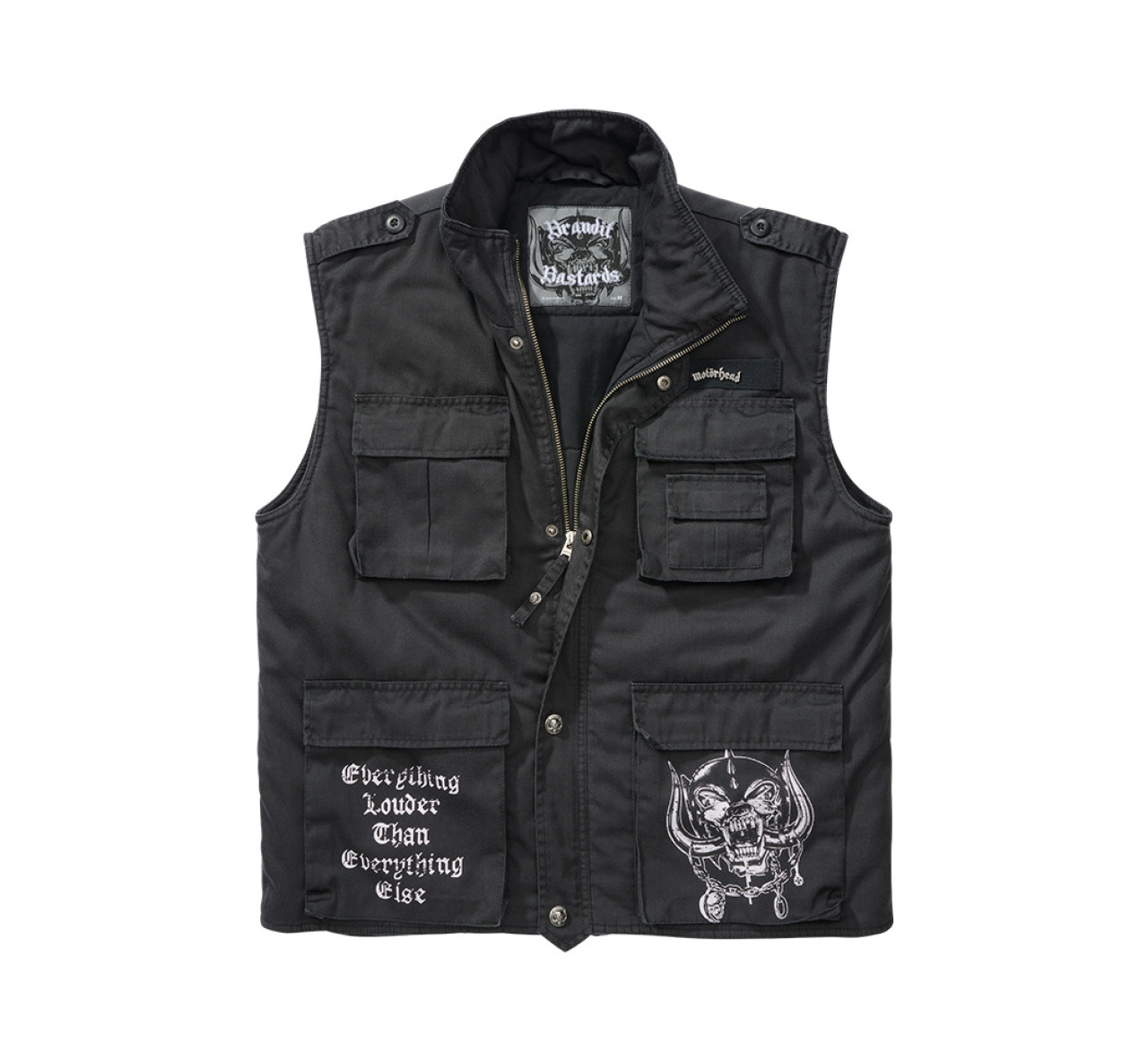 Vysokokvalitná pohodlná pánska vesta z kvalitného materiálu v dokonalom dizajne Motörhead. Priamy rez. Zapínanie na zips. Dve veľké vrecká na prednej strane.