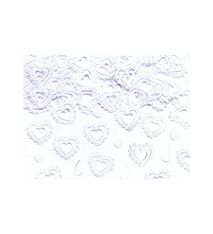 Konfety s motívom bielych srdiečok sú skvelou voľbou na každú oslavu.