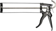 Pištoľ na tmel poloskeletová kovová 225mm pevný oceľový piest a skelet, ľahká hliníková rukoväť, s možnosťou polovičného dávkovania.