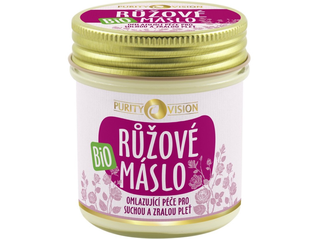 Maslo – s omladzujúci starostlivosťou pre suchú a zrelú pleť.Ružové bio maslo PURITY VISION je vhodné na ošetrenie pokožky celého tela. Hutné maslo maximálne hydratuje, zvláčni a vyživí kožu rúk, nôh alebo pier. Ružové maslo je vyrobené technológiou pozvoľnej macerácie ruže damašskej. Puky ruže sú macerované v bambuckom bio masle, čím sa do neho uvoľní jemná vôňa ruží a ich účinné látky. Ruža má regeneračné a omladzujúce účinky na pleť a pokožku. PURITY VISION bio ružové maslo je certifikovaným výrobkom zaisťujúcim tú najvyššiu kvalitu bio produktov. Zloženie masla je z 85 % prírodného pôvodu. Výrobok neobsahuje umelé látky ani farbivá. Kľúčové vlastnosti masla PURITY VISION bio ružové masloMaslo PURITY VISION bio ružové je vhodné na ošetrenie pokožky celého telaMaslo maximálne hydratuje, zvláčni a vyživuje kožu rúk, nôh alebo pierBio ružové maslo je vyrobené pozvoľnou maceráciou pukov ruže damašskejRuža má regeneračné a omladzujúce.