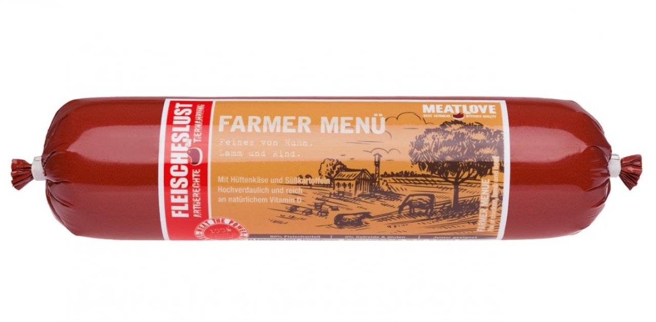 Farmer Menu - Kurča, jahňa a hovädzie so syrom cottage a sladkými zemiakmi Špeciálne navrhnuté pre šteňatá Zloženie: 80% mäsa a vnútorností (28%….