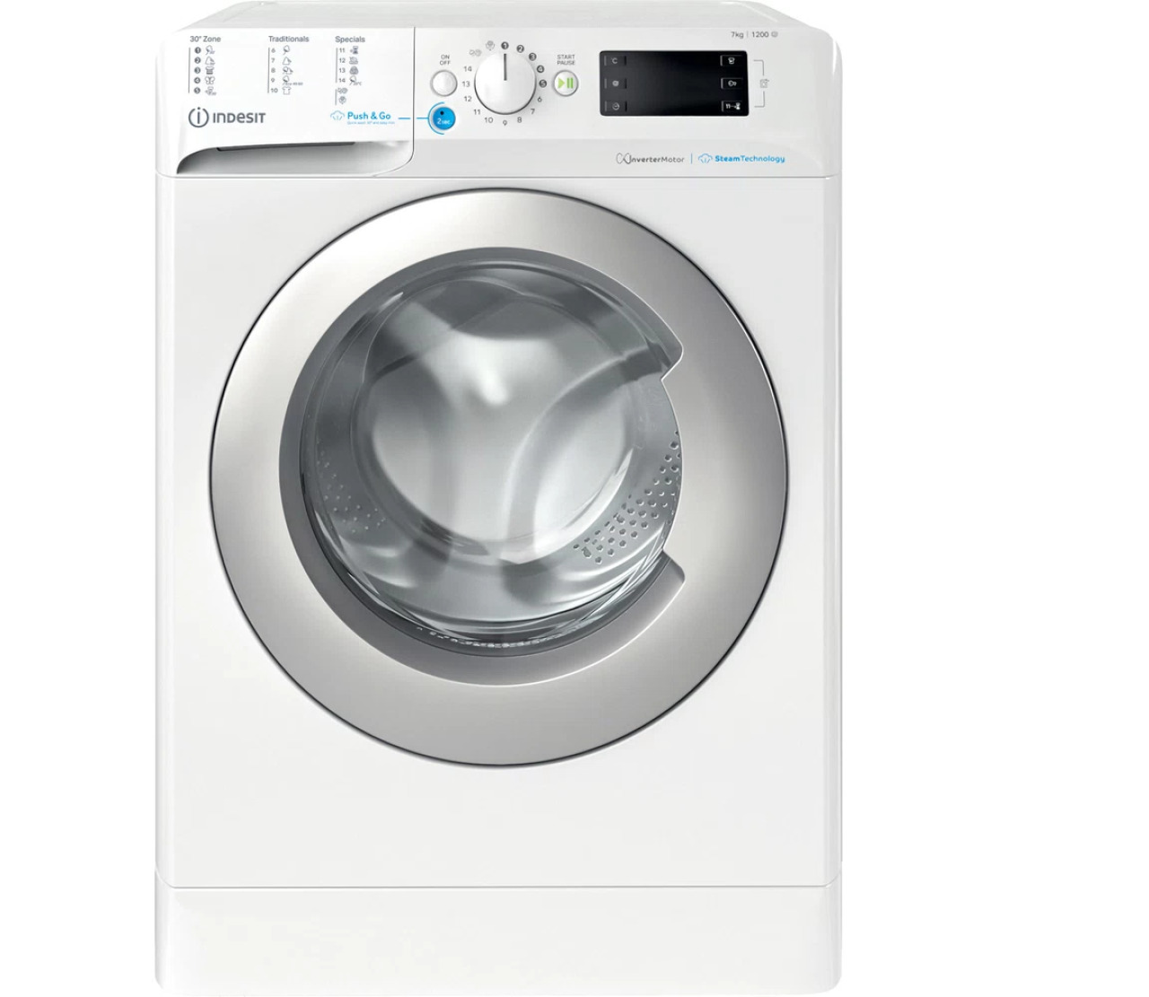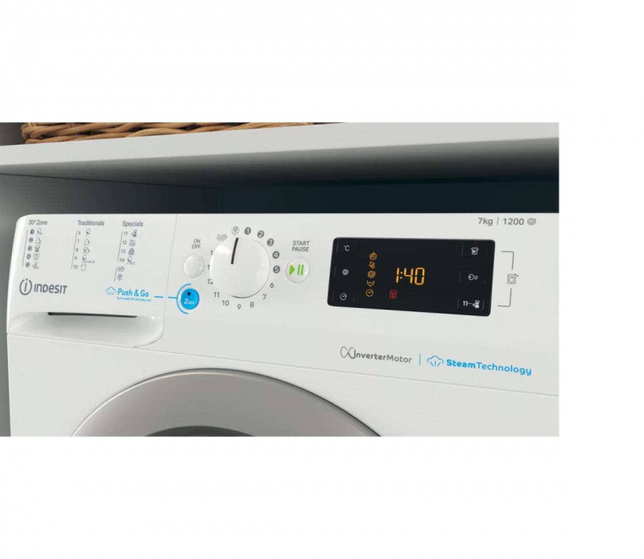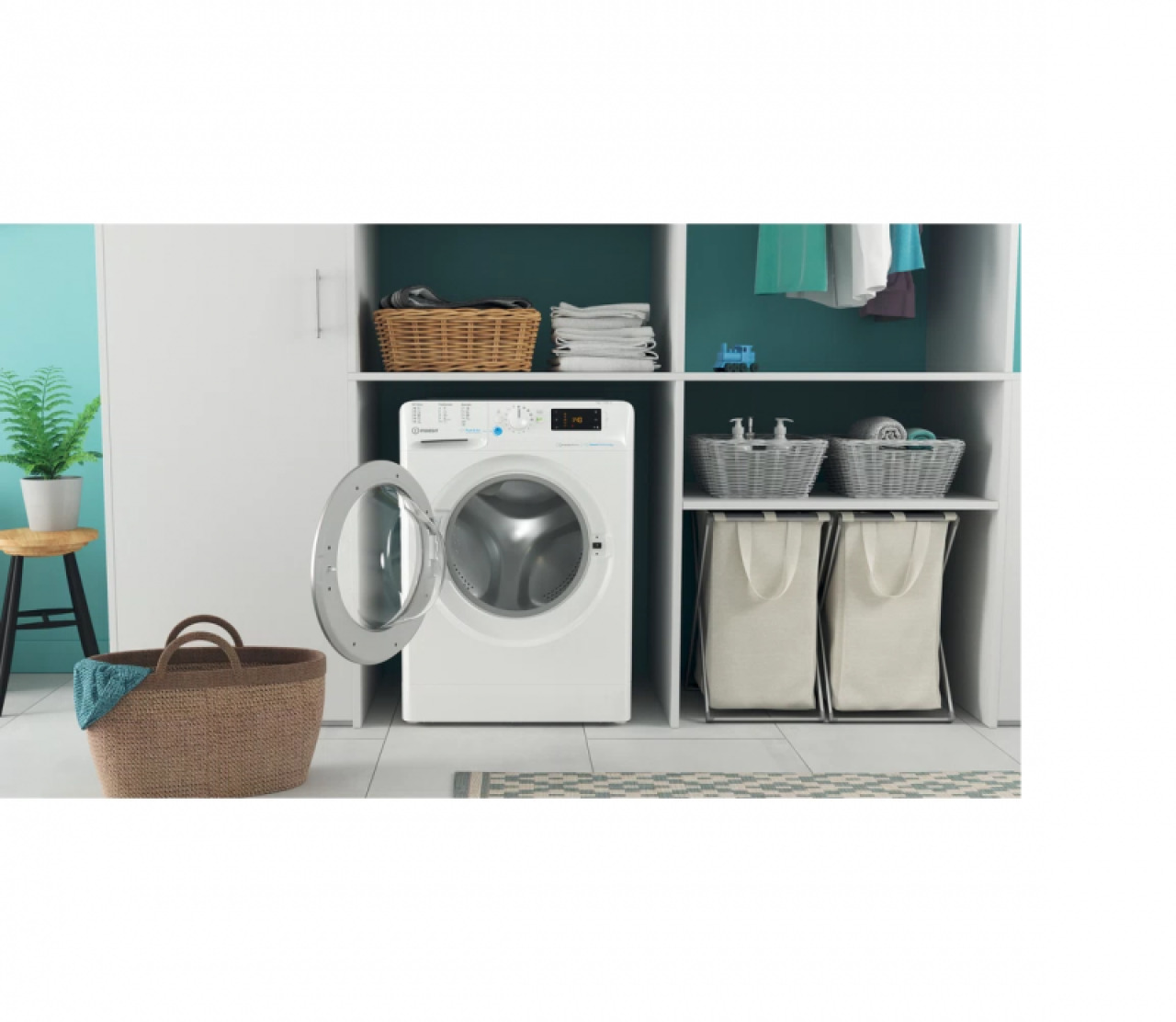 Indesit BWSE 71295X WSV EUTáto voľne stojaca spredu plnená práčka Indesit ponúka: priestranná kapacita 7,0 kg. Energetická trieda B. Rýchle a účinné využitie rýchlosti 1200 otáčok za minútu. Biela farba. Push&Go "Technológia Push&Go je navrhnutá tak, aby efektívne odstránila viac než 20 bežných typov škvŕn, bez predpierania, len za 45 minút vďaka dotyku gombíka.* *Stačí len jeden dotyk po spustení spotrebiča." Vďaka pokrokovým výkonom a špeciálnej starostlivosti o vlákna intertorový motor zlepšuje účinnosť vášho spotrebiča, takže môžete ušetriť energie. Výnimočná energetická účinnosť je zaručená vďaka energetickej triede B. Skutočný spojenec pre váš rodinný rozpočet! Tieto energeticky úsporné programy 30° zóny vyperú bielizeň len na 30°C, pričom zaručia rovnaké výsledky ako pri praní na 40°C**. *Úspora energie na kg v porovnaní s bavlnou 40°, syntetikou 40°, farebnou bielizňou. **Normatívny index čistenia v porovnaní s bavlnou 40°, syntetikou 40° a farebnými programami. Vysoko úsporný program Water Balance Plus pre pranie malého množstva bielizne. Šetrí až 70% vody, 50% energie a cyklus prania skráti až o 35%. Program s odloženým začiatkom prania podľa vašich potrieb pre pranie neskôr alebo v noci. Jednoducho zvoľte program a o ostatné sa postará práčka Indesit. Program automatického samočistenia práčky jednoduchou voľbou programu, dokonca nemusíte dávať ani žiadne čistiace prostriedky. Uzamknutie ovládacieho panelu pred nechceným zapnutím práčky deťmi alebo nepovolanou osobou. Špeciálny program určený pre pranie prikrývok a odevov s výplňou, zároveň chráni poťahy a zabezpečuje rovnomerné rozloženie aj perových výplní. Parametre produktuÚčinnosť a spotreba