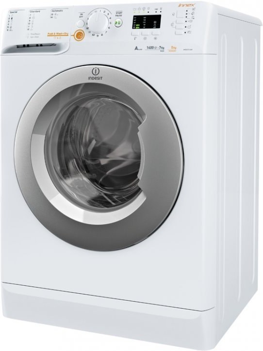 7kg pranie /5kg sušenie, A, LED kontrolky, 0-1400 ot./min., bezuhlíkový motor - tichý chod, pregramy: Push & Wash + Dry - univerzálny program, Express pranie + sušenie 45 min, samočistenie, AirFresh 30 min - rýchle osvieženie, odložený štart, Ročná spotreba vody (l) : 18400, vxšxh 85x59, 5x54cm, biela so striebornými dvierkami, 66,5 kg Práčka so sušičkou Indesit XWDA 751480X WSSS EU AirFresh Osvieži až 1,5 kg bielizne pri 30° C za 30 minút. Innex Najlepšie riešenie na pranie bežne znečistenej bielizne. Jednoduchým stlačením jedného tlačidla nahrádza Indesit zapnutie, výber programu a začatie pracieho cyklu, s istotou odstráni každodenné nečistoty z bavlny a syntetických látok za 50 minút. Oblečenie na von Program Rýchle pranie & sušenie vyperie, usuší a pripraví bielizeň na oblečenie za 45 minút! Ochrana džínsoviny je teraz dokonca jednoduchšia s týmto jemným praním. Vaše džínsy budú vypraté a usušené perfektne a je venovaná zvláštna starostlivosť ochrane sýtosti farieb. Športové programy sú perfektné na starostlivosť o technické látky a obuv. Úrovne automatického sušenia Či už práčka so sušičkou, alebo kondenzačná sušička Indesit, oba typy využívajú automatický senzor v bubne, ktorý monitoruje úroveň vlhkosti a zastaví bubon v okamihu, keď je odev perfektne suchý. Zvoľte prístroj so systémom viacúrovňového senzoru a budete si môcť vybrať požadovanú úroveň suchosti – sušenie na žehlenie, zavesenie na ramienko alebo uloženie do skrine. Sušičky s funkciou časovaného sušenia umožňujú nastaviť čas sušenia v minútach od 30 do 180. Program na odstraňovanie zápachu Odstránenie nepríjemných a odolných zápachov vďaka novým pohybom bubna, pridanému plákanie na konci cyklu a konštantnú teplote udržiavanej počas prania. Technické informácie: Programy prania a sušenia Počet programov prania : 16 Počet programov sušenia : 12 Rýchly program prania a sušenia Program Vlna Woolmark Gold Care Voľba Regulácie rýchlosti otáčok Vlastnosti Trieda energetickej účinnosti : A Účinnosť prania : A Účinnosť sušenia : B Maximálna rýchlosť odstreďovania (rpm) : 1400 Ročná spotreba energie (kWh) : 952 Ročná spotreba vody (l) : 18400 Hlučnosť (dBA) : 54 Konštrukčné vlastnosti Kapacita prania (kg) : 7 Kapacita sušenia (kg) : 5.0 Objem bubna (l) : 52 Farba : Biela Farba dvierok : Strieborná Všeobecné vlastnosti Regulácia rýchlosti otáčok Rozmery Výška (cm) : 85 šírka (cm) : 59.5 hĺbka (cm) : 54 Hmotnosť (Kg) : 66.5 Výška vrátane obalu (cm) : 89 Šírka vrátane obalu (cm) : 64.5 Hĺbka vrátane obalu (cm) : 59