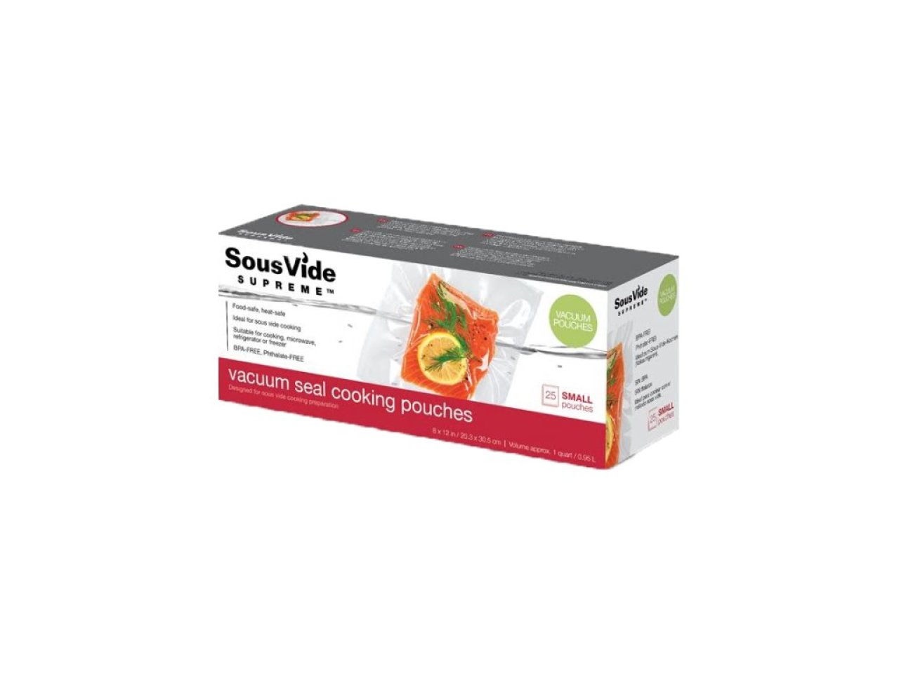 POPIS.Vákuové sáčky o objeme 0,9 litra určené k vákuovaniu mäsa, zeleniny a ďalších potravín, ktoré môžete nechať len tak zavákuované a uskladniť len v chladničke či v mrazničke alebo ho následne vložiť do vodného kúpeľa nazývaný Sous Vide, kde dochádza k tepelnej úprave pokrmov pri konštantne nízkej teplote, vďaka nej sa potraviny nevysušujú a udržujú si maximum výživných látok. Mäso pripravované touto metódou bude krásne mäkké a šťavnaté a steak sa vám podarí prepiecť presne tak, ako ste si priali. Vákuové sáčky môžete navyše používať s vákuovačkami a Sous-Vide hrnci iných výrobcov.ŠPECIFIKÁCIE .Balenie obsahuje: 25 sáčkov o objeme 0,95 l.Rozmery sáčka: 20,3 x 30,5 cm.VÝHODY A NEVÝHODY.Veľká pevnosť fólie a odolnosť proti roztrhnutiu.Možnosť opakovaného použitia po dôkladnom umytí sáčkov.Vo fólií vám potraviny vydržia dlhšie čerstvé, predĺži sa ich trvanlivosť až 5 krát.Jednoduché uskladnenie surovín v chladničke a v mrazničke. V sáčku potraviny nezaberajú toľko miesta ako v plastových dózach. Možnosť varenia metódou Sous-Vide ďlhé varenie pri nízkych konštantných teplotách). Jedlo bude šťavnaté a mäkké, zachová si objem, tvar, farbu a maximum chutí.Sáčky môžete použiť aj do vákuovačky iných značiek napr. Steba, Gorenje alebo Guzzanti.O žiadnej nevýhode zatiaľ nevieme.PRAKTICKÉ RADY .ČO ĎALEJ?Páči sa vám tento produkt? Skvelé! Pridajte ho do košíka a pokračujte v nákupe.Nevyhovuje vám? Skúste sa pozrieť na ostatné produkty značky Sous Vide Supreme alebo na podobné produkty ďalších značiek.