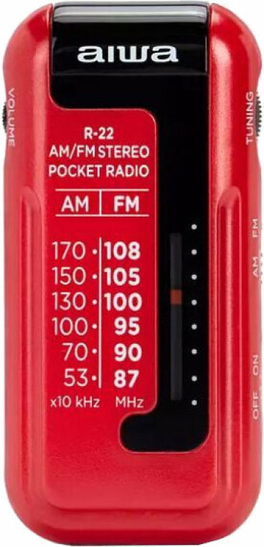 Vreckové rádio so slúchadlami. Vintage štýlový dizajn. Kompaktná veľkosť s klipom na opasok. Stereo frekvencia AM / FM. Analógový ETS (Easy-tuning-system). Kvalitná rádiofrekvenčná citlivosť. Hyperbasové vylepšenie zvuku. Konektor pre slúchadlá (3,5 mm). DC 3V = 2 x 1,5V AAA batérie Obsahuje slúchadlá do uší Aiwa-Q Design a batérie.