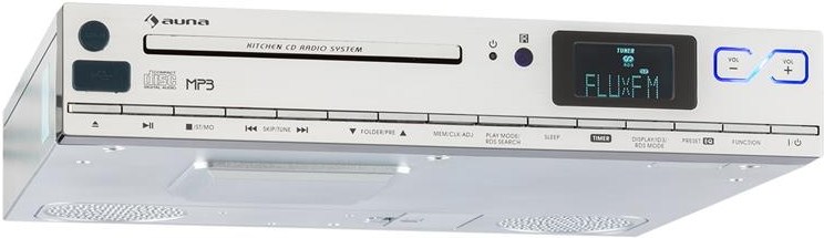 Na navodenie príjemnej atmosféry pri varení ponúka auna výkonné rádio KCD 20. Do základnej výbavy rádia patrí FM prijímač s možnosťou uloženia 20 staníc. Popritom podporuje aj funkciu RDS, čiže zobrazuje informácie o interpretovi, názve piesne, albumu či žánra. Ozvučenie preberajú dva silné 6,5 cm (1,5") širokopásmové reproduktory skryté za bezpečnostným krytom. Rozličné nastavenia ekvalizéra umožňujú optimálne prispôsobenie zvuku. Prehľadne podsvietený LCD displej zobrazuje RDS informácie a ID3 tagy z MP3 hudobných titulov. V pohotovostnom režime zobrazuje aktuálny čas. Predný AUX vstup slúži na pripojenie externých zariadení, ako napr. mobilných telefónov, tabletov či notebookov. MP3-podporujúci USB port zase umožňuje priame prehrávanie hudby z USB pamäťových médií. Ďalšia prednosť rádia spočíva v nastaviteľnom alarme, ktorý v kuchyni možno využiť ako časovač pri varení. Nastaviteľný sleeptimer uzatvára funkcionálnu výbavu rádia. Rádio auna KCD-20 sa dá úsporne inštalovať na spodnú stranu napr. skrinky či poličky. Dizajn rádia zapadne do klasicky, ale aj moderne zariadených kuchýň. Predný hliníkový panel dodáva zariadeniu nádych luxusu. Dodávanú anténu možno nenápadne skryť bez straty kvality signálu. Diaľkový ovládač zabezpečuje pohodlné ovládanie, magnetické plochy na strane rádia slúžia na jeho praktické uloženie.