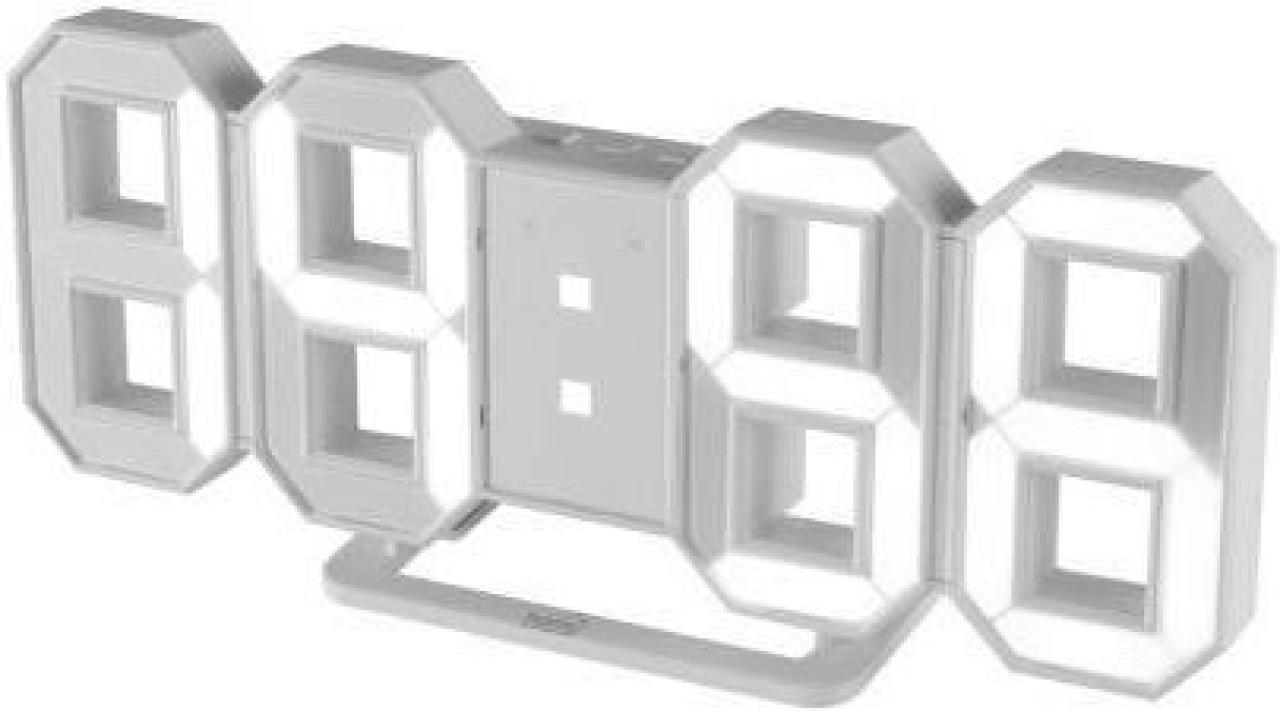 Popis: -3,14” / 80 mm vysoký biely 3D LED displej.dobre viditeľný vo dne v noci.čitateľný zo vzdialenosti 30 metrov.voľba troch stupňov intenzity jasu (20.. 70.úsporný, nočný režim.voľba intenzity jasu podľa dennej doby.12 alebo 24 hodinový časový formát.budenie 2 minútovým pípaním.5.možnosť uloženia na stôl alebo montáže na stenu.záložná gombíková batéria CR2032 (3 V) pre časovú pamäť, je príslušenstvom.napájanie: sieťový USB adaptér a 1,8 m USB kábel, je príslušenstvom.rozmery: 235 x 100 x 25 mm / 180 g • Typ hodín: Budík.