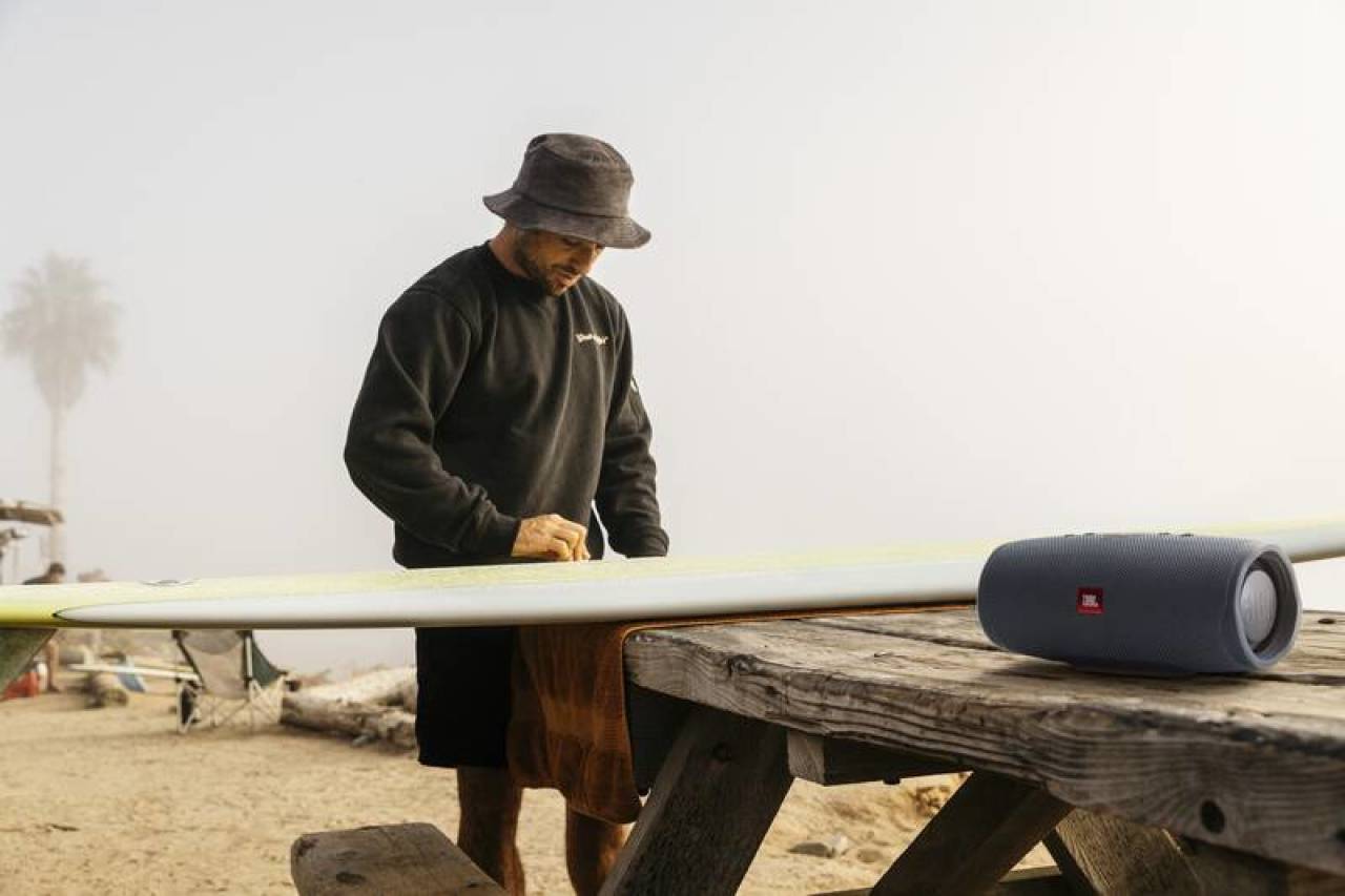 Kvalitný zvuk a batéria s dlhou výdržouTechnológia JBL Original Pro Sound sa stará o vynikajúce zvukové podanie, či už počúvate moderný štýl hudby, metalové skladby alebo klasiku. Optimalizovaný zvukový prevodník prináša vyššiu hlasitosť pri zachovaní rovnakých hudobných kvalít. 27 Wh batéria vo vnútri reproduktora je ekvivalentná k hodnote 7 500 mAh a dokáže udržať reproduktor v chode až 20 hodín na jedno nabitie. Dobíjanie batérie prebieha cez USB-C port a trvá približne 4 hodiny. Na zadnej strane sa nachádza aj USB-A port, cez ktorý môžete dobíjať napríklad váš smartfón bez toho, aby ste museli prerušiť prehrávanie hudby. Obsah balenia:
