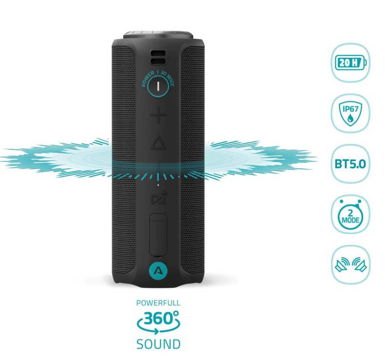 Skvelá výdrž i odolnosťReproduktor vydrží na nabitie prehrávať hudbu až 20 hodín a zaujme aj odolnosťou proti vode a prachu podľa IP67.