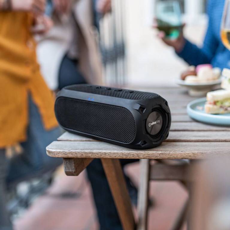 prenosný reproduktor • výkon 24 W • impedancia 8 ohm • frekvenčný rozsah 65 Hz až 25 kHz • výdrž až 24 hod • Bluetooth 5.0 • USB • čítačka pamäťových kariet • FM rádio • funkcia powerbanky • integrovaný mikrofón • odolnosť IP67 • AUX Reproduktor Niceboy RAZE 3 Radion vyniká dlhou výdržou až 24 hodín rovnako ako luxusným výkonom 24 W pre ozvučenie aj veľkých priestorov a technológiou MaxxBass pre dunivejšie basy. Vďaka odolnej konštrukcii voči vode, prachu a pádom ho môžete vziať skutočne kamkoľvek a ohromí vás aj tým, ako kreatívny je v otázke zdrojov. Okrem integrovaného Bluetooth 5.0 pre streamovanie hudby z mobilov a ďalších zariadení totiž ponúkne aj FM rádio*, USB pre flashdisky alebo čítačku pamäťových kariet. Bonusom potom je, že dokáže suplovať aj powerbanku a doplniť energiu napríklad vášmu mobilu.