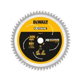 Pílové kotúče XR Extreme Runtime zvládnu až o 63%(podľa druhu kotúča) viac rezov na jedno nabitie akumulátora oproti štandardným pílovým kotúčm DeWalt.Vlastnosti:.2x dlhšia životnosť.tenký kotúč pre väčšiu efektivitu rezu a úsporu času.vysoko kvalitné zuby zo zliatiny volfrámu.odolnosť proti klincom, aj na rezanie dreva s klincami.linky proti vibráciám a hluku pre tichý chod a lepšie výsledky rezania.optimalizovaná geometria zubov ATB s altenatívnym zubom R na lepší odvod triesky a zrýchlenie celého pracovného procesu, čo zaručuje zníženie spotreby energie akumulátora.Technické parametre:.priemer kotúča: 305mm.upínací otvor: 30mm.hrúbka kotúča/rezu: 1,6/2,16mm.geometria zuba: ATB+R.uhol zuba: 7°.počet zubov: 60z.jemný rez.