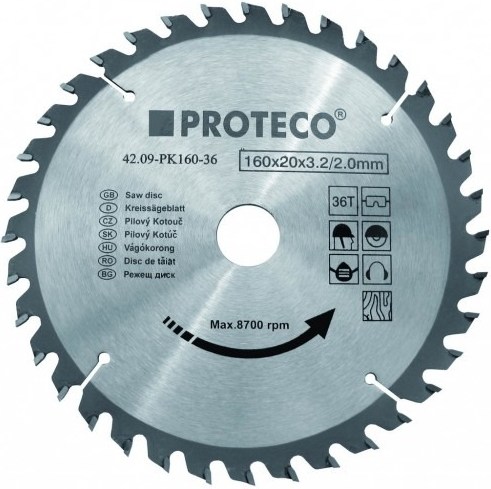 Pilový kotúč PROTECO SK 300x3.2x30/20 40Z.Kvalitný pilový kotúč určený na rezanie dreva a drevotriesky.Priemer kotúča : 300 mm.Hrúbka kotúča : 3.2 mm.Vnútorná diera kotúča : 30 mm + redukcia na dieru 20mm.Počet zubov : 40.