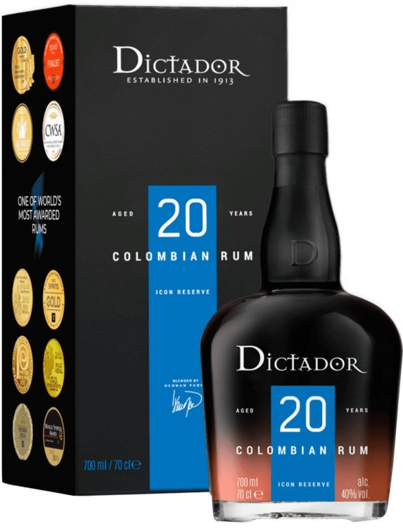 Doprajte si jeden zo zlatom najoceňovanejších rumov sveta Dictador 20-ročný v sete s 2x brúseným pohárom! Tento rum pochádza z Kolumbie. Vyrába fermentáciou panenského medu z cukrovej trstiny a destilovaním čiastočne kotlíkovou a kolónovou metódou, vďaka čomu získava stredne plné telo. Rum následne dozrieva ...viac