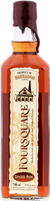 Foursquare je názov najstaršej cukrovej plantáže (1636) na Barbadose. Je domovom najvyspelejšej destilérky rumu na svete. Foursquare Spiced Rum je kombináciou zriedkavého ostrovného korenia a špeciálne zrelého rumu zmiešaného v súlade so stáročnou tajnou receptúrou známou iba generáciám rodiny. Vôňa: korenistá a sladká, tóny mäty priepornej, muškátového oriešku, vianočného koláča, marmelády a petržlenuChuť: karamelové jablko, sladké korenie a perník, trochu parfumovaný charakter a horkosť pomarančovej šupkyZáver: dlhý, sladký a korenistý.